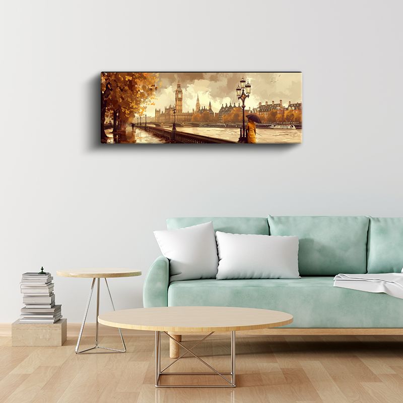 Westminster Silueti - Sonbahar Nehir Kenarı Kanvas Tablo