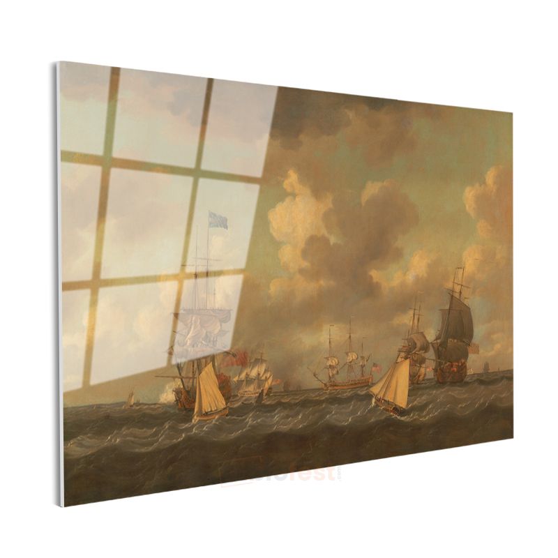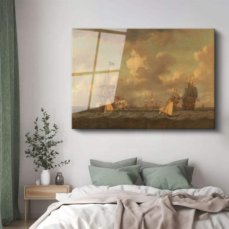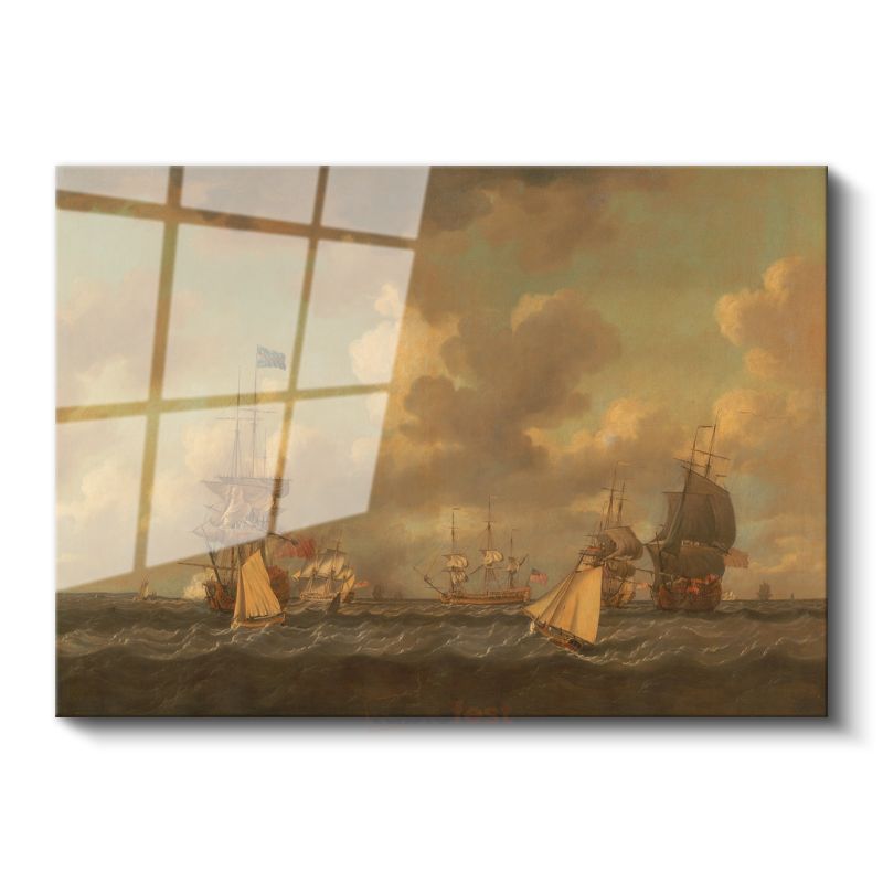 Willem van de Velde - Deniz Savaşı Manzarası Cam Tablo