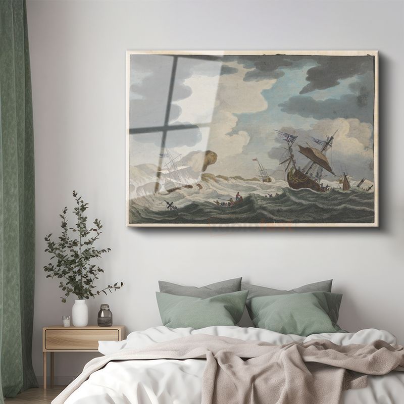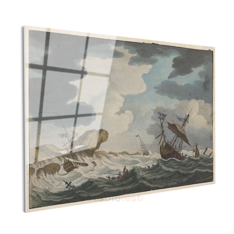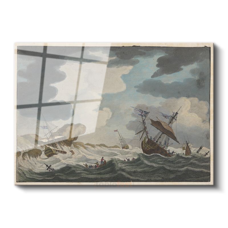 Willem van de Velde - Fırtınada Gemiler Cam Tablo
