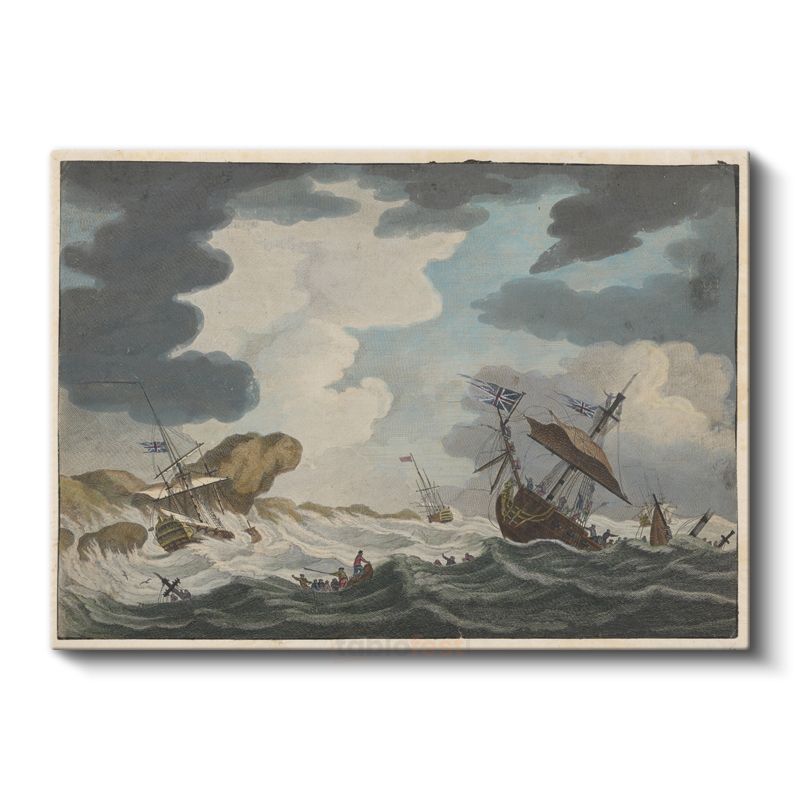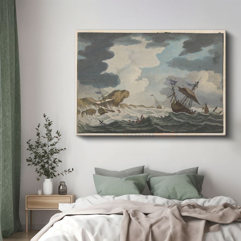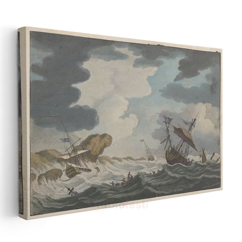 Willem van de Velde - Fırtınada Gemiler Kanvas Tablo