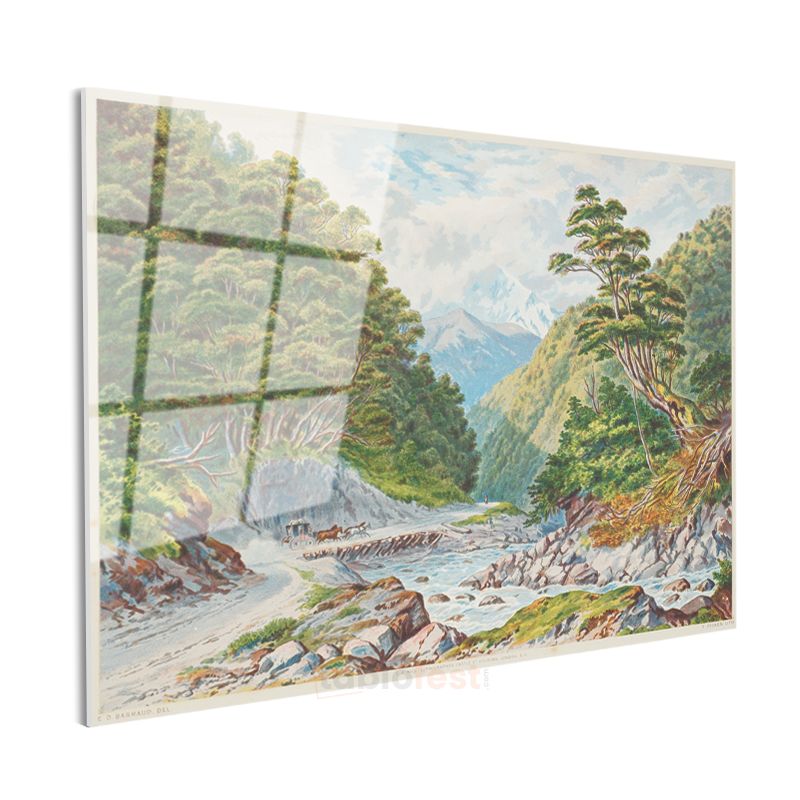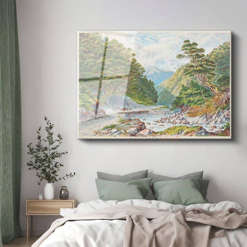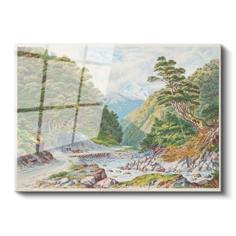 William Charles Piguenit - Dağ Nehri Manzarası Cam Tablo