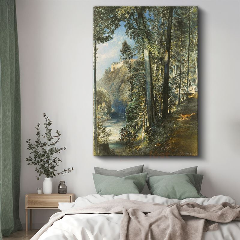 William Trost Richards - Nehir Kenarında Ağaçlar Kanvas Tablo