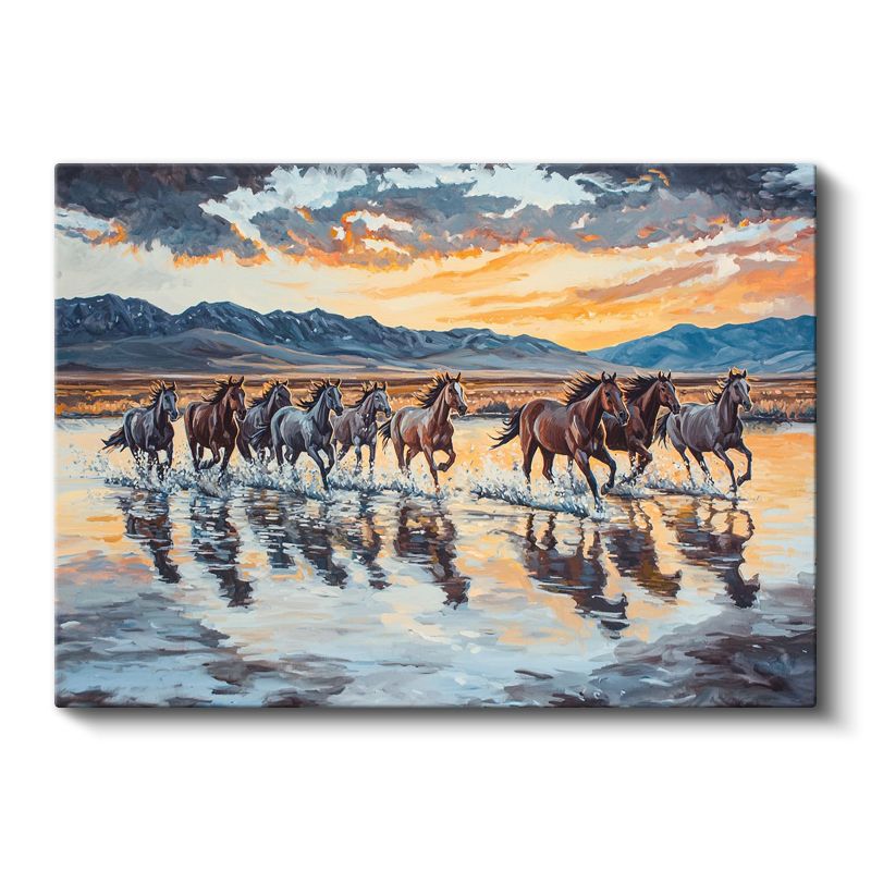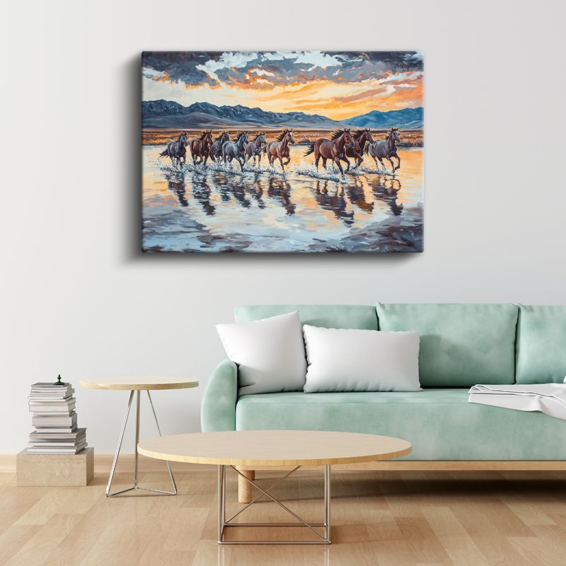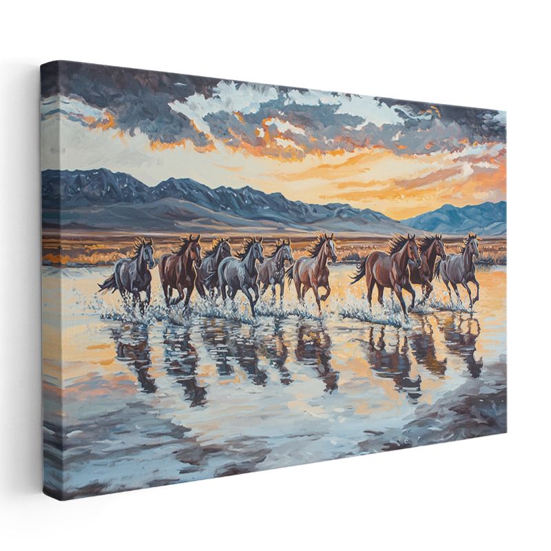 Yağlı Boya Atlar - Suda Sıçrayan Sürünün Özgürlüğü Kanvas Tablo