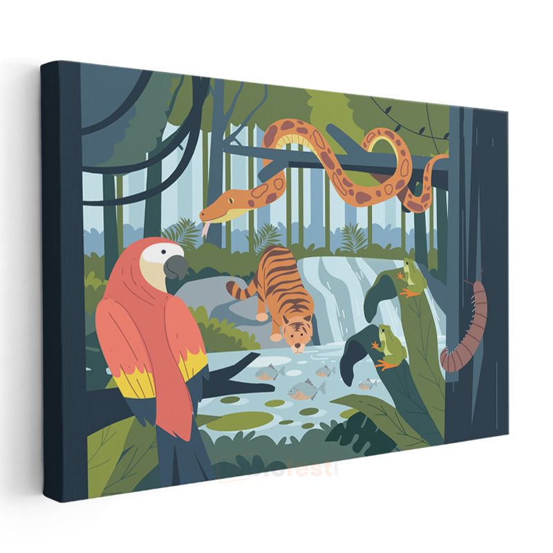 Yağmur Ormanı - Vahşi Hayvanlar Macerası Kanvas Tablo