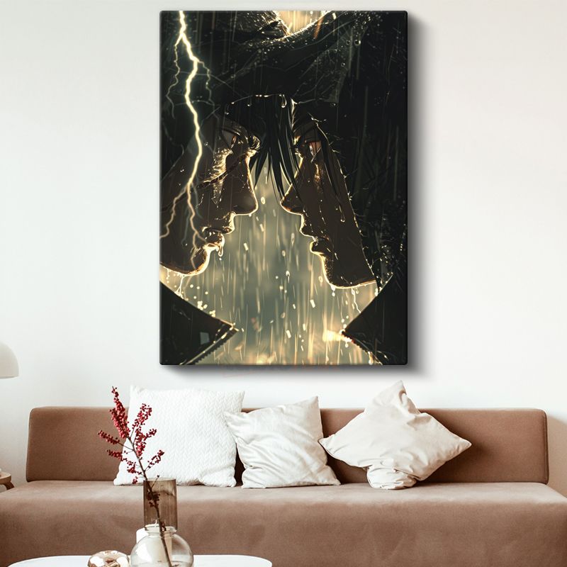 Yağmurda Karşılaşma - Dramatik An Anime Kanvas Tablo