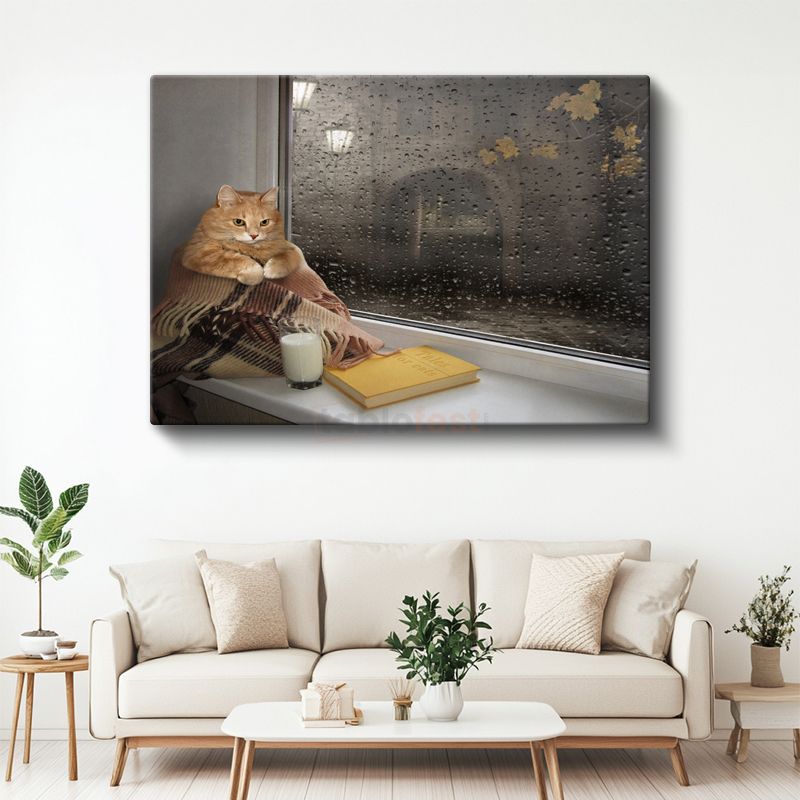 Yağmurlu Gün Kedisi - Pencere Kenarında Huzurlu Anlar Kanvas Tablo