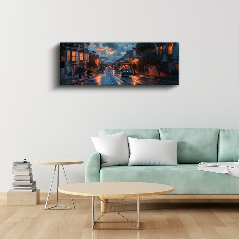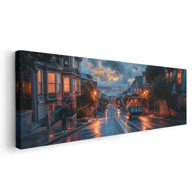 Yağmurlu Yokuş - San Francisco Tramvayı Kanvas Tablo