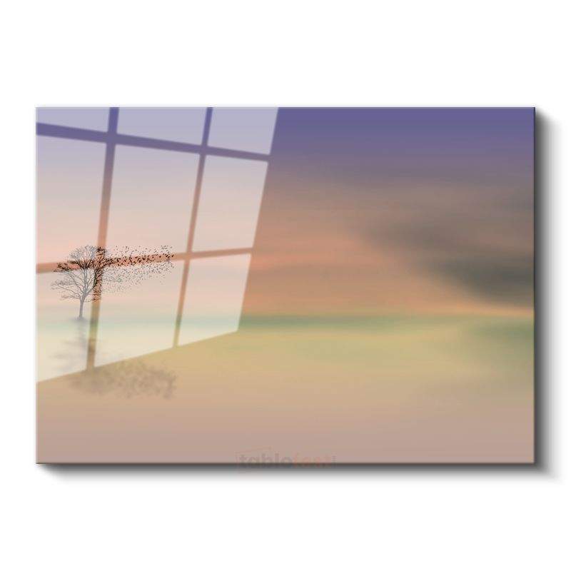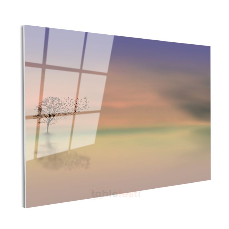 Yalnız Ağaç - Minimalist Doğa Silueti Cam Tablo