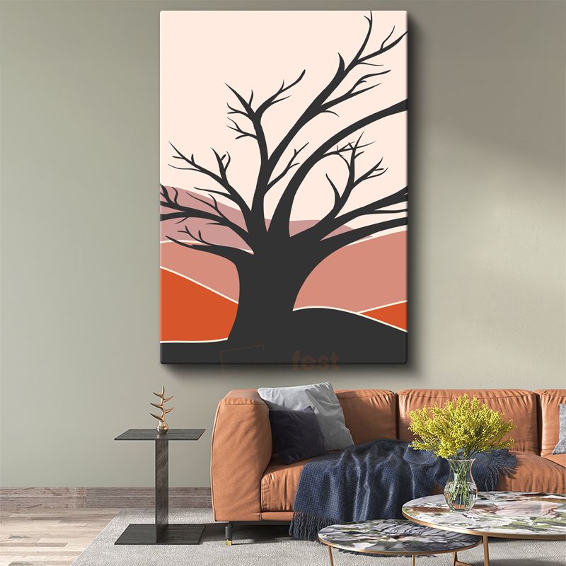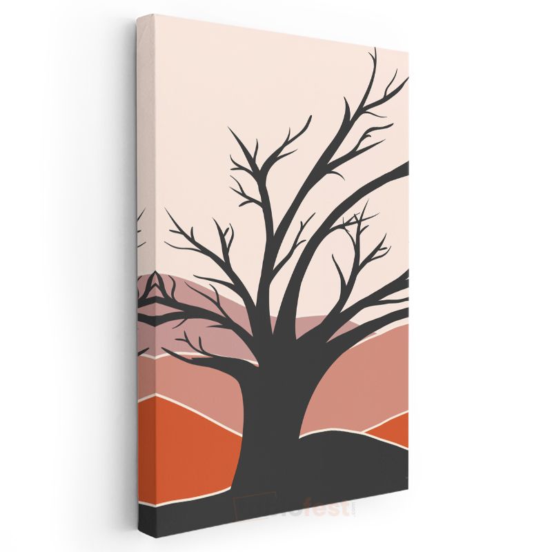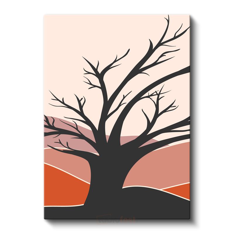 Yalnız Ağaç Silüeti - Sonbahar Renkleriyle Soyut Manzara Kanvas Tablo