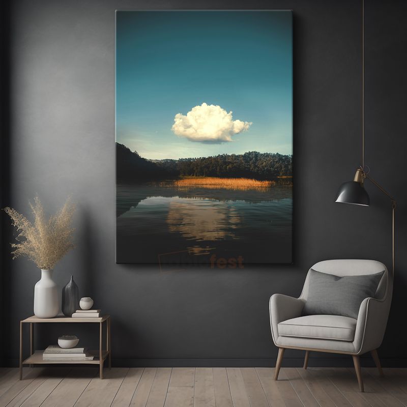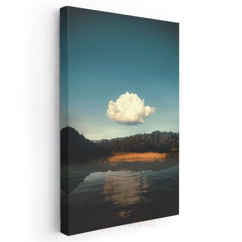 Yalnız Bulut - Orman Gölü Üzerinde Huzurlu Yansıma Kanvas Tablo
