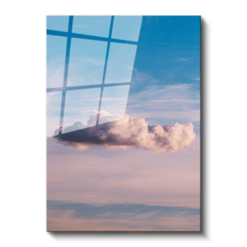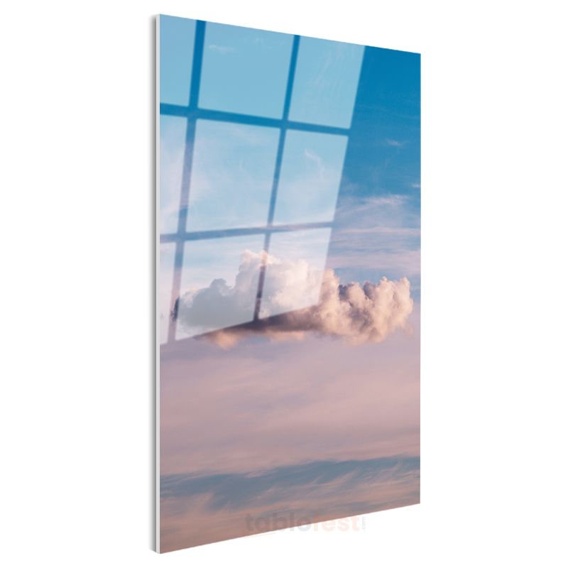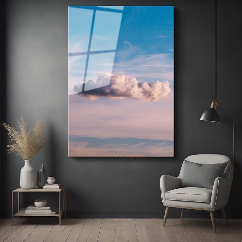 Yalnız Bulut - Pastel Gökyüzü Manzarası Cam Tablo