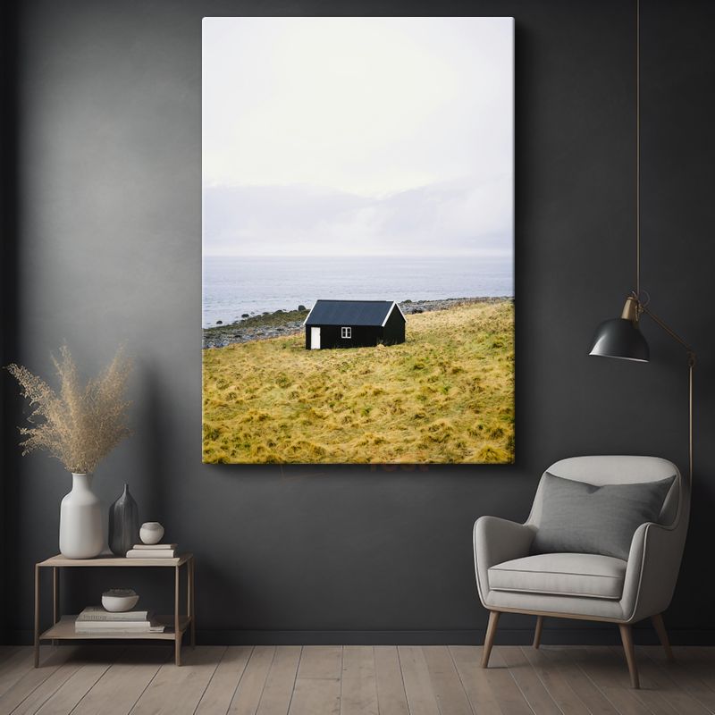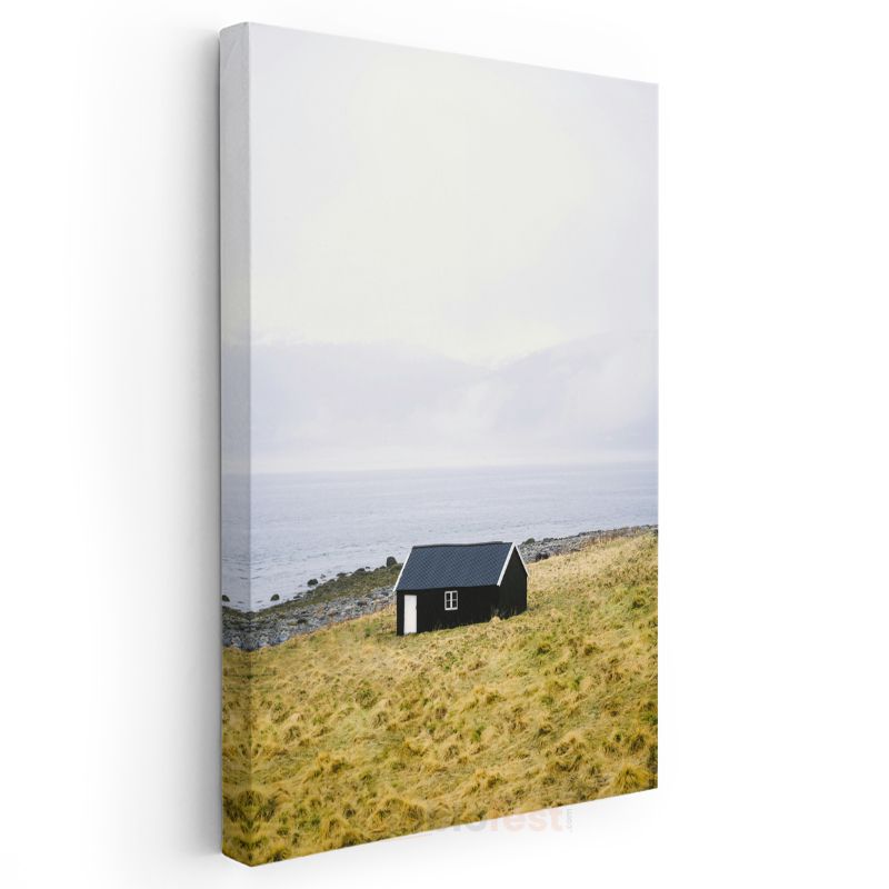 Yalnız Kulübe - Deniz Kenarında Huzur Veren Minimalist Manzara Kanvas Tablo