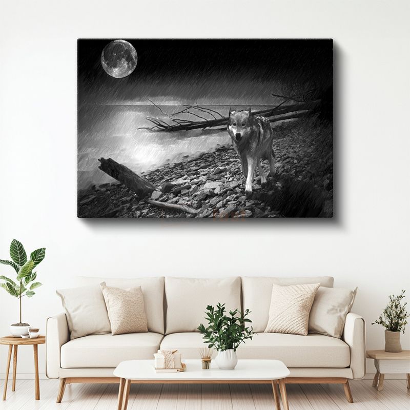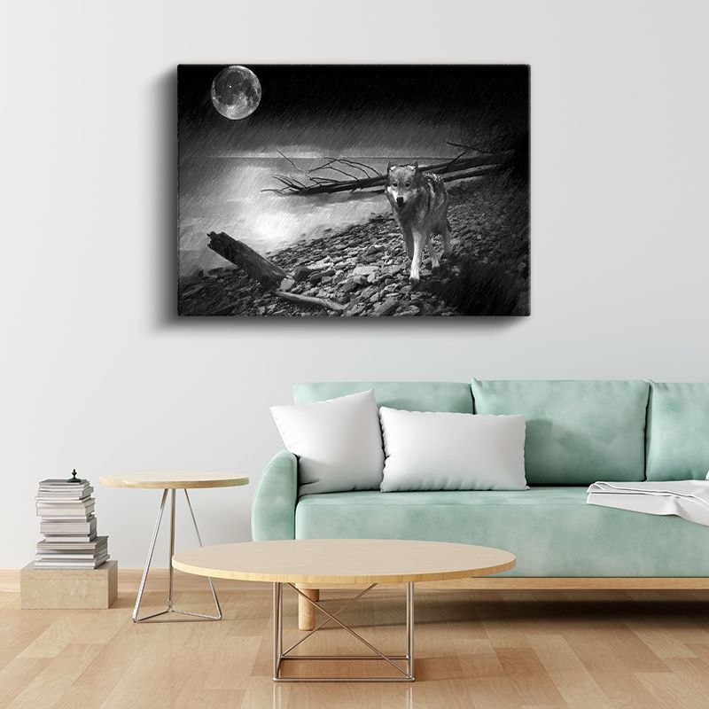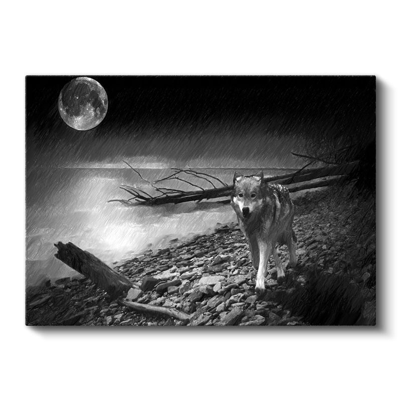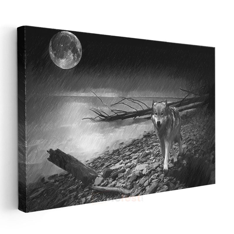 Yalnız Kurt - Dolunay Altında Vahşi Doğada Kanvas Tablo