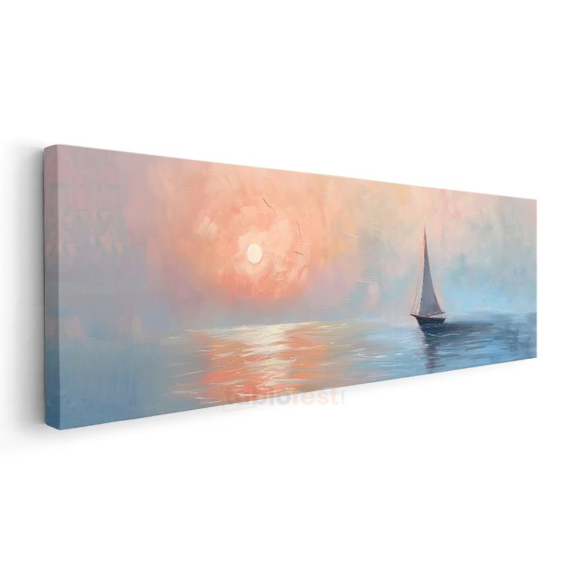 Yalnız Yelkenli - Pastel Renkli Deniz Manzarası Kanvas Tablo