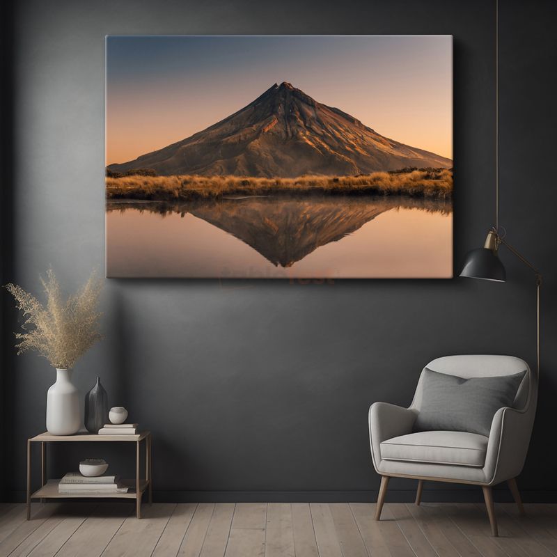 Yanardağ - Gün Batımında Göl Yansıması Kanvas Tablo