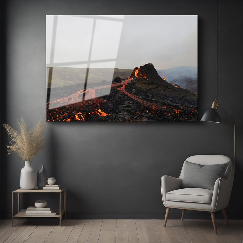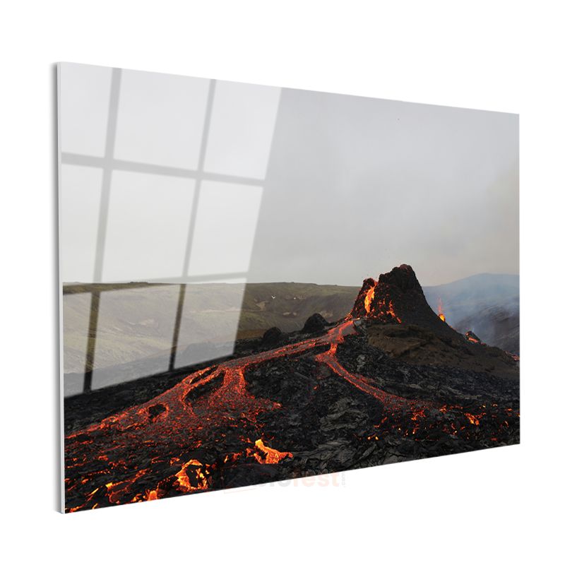 Yanardağ - Kızgın Lav Akışı Cam Tablo