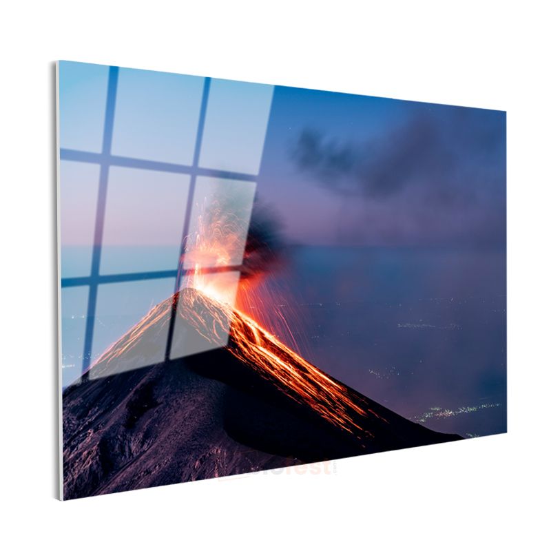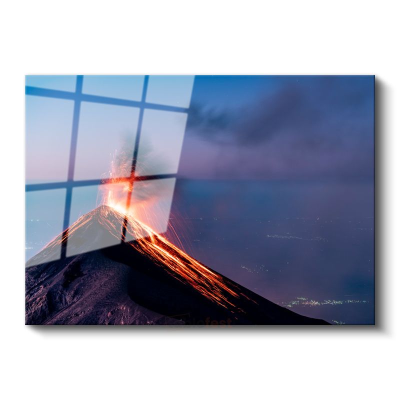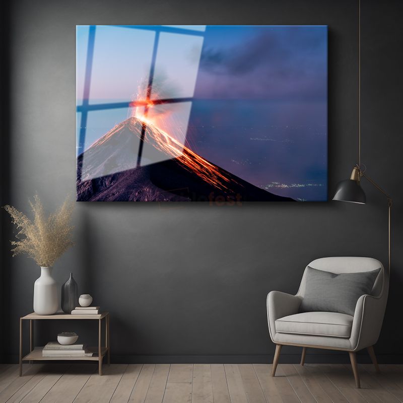 Yanardağ Patlaması - Alev ve Lav Dansı Cam Tablo