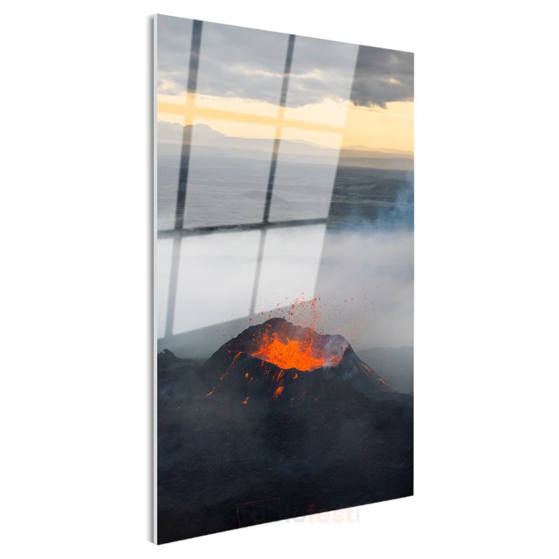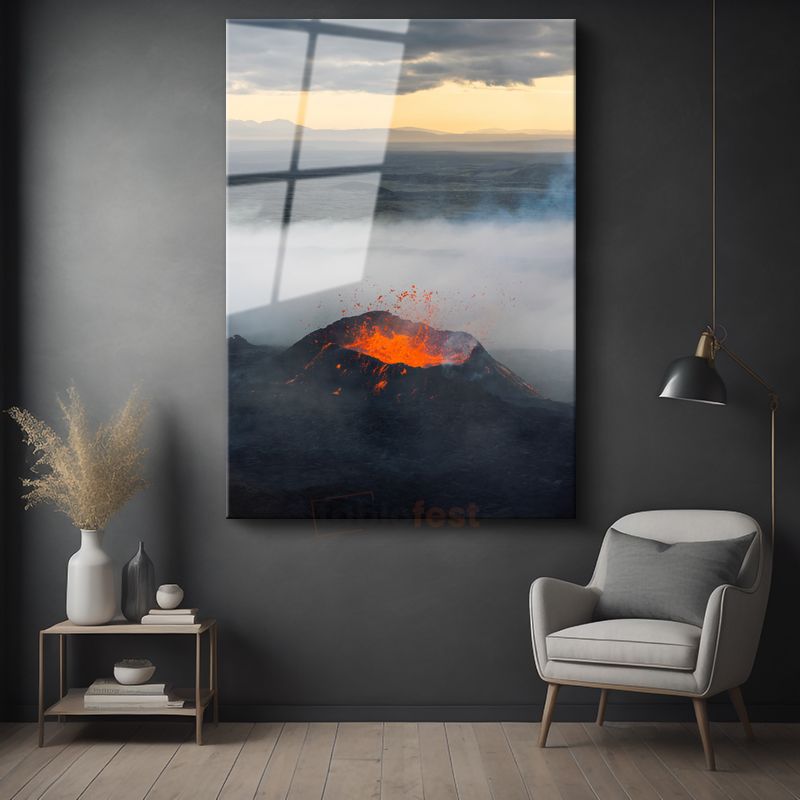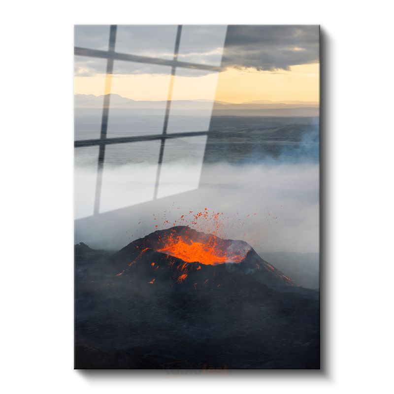 Yanardağ Patlaması - Doğanın Ateşli Gücünün Muhteşem Görüntüsü Cam Tablo