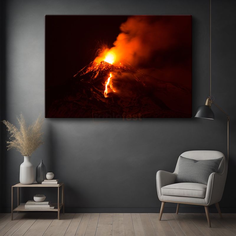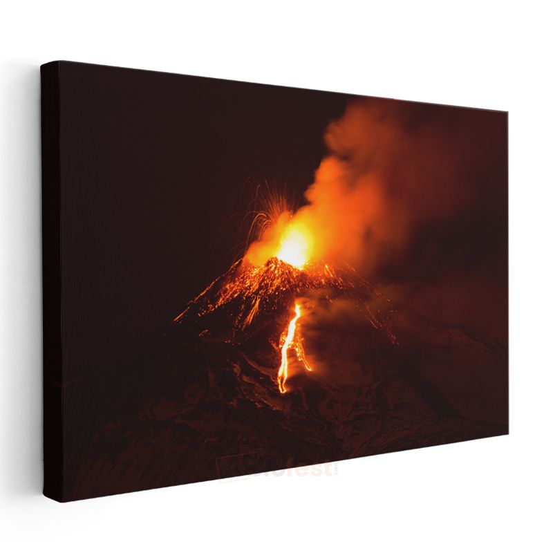 Yanardağ Patlaması - Gecenin Karanlığında Dans Eden Lavlar Kanvas Tablo
