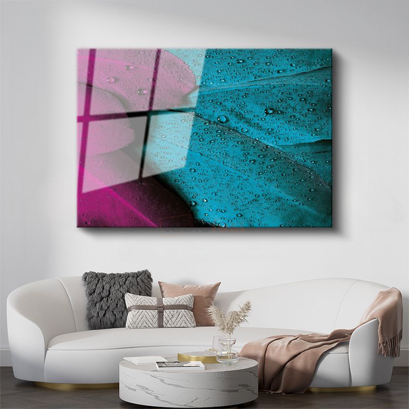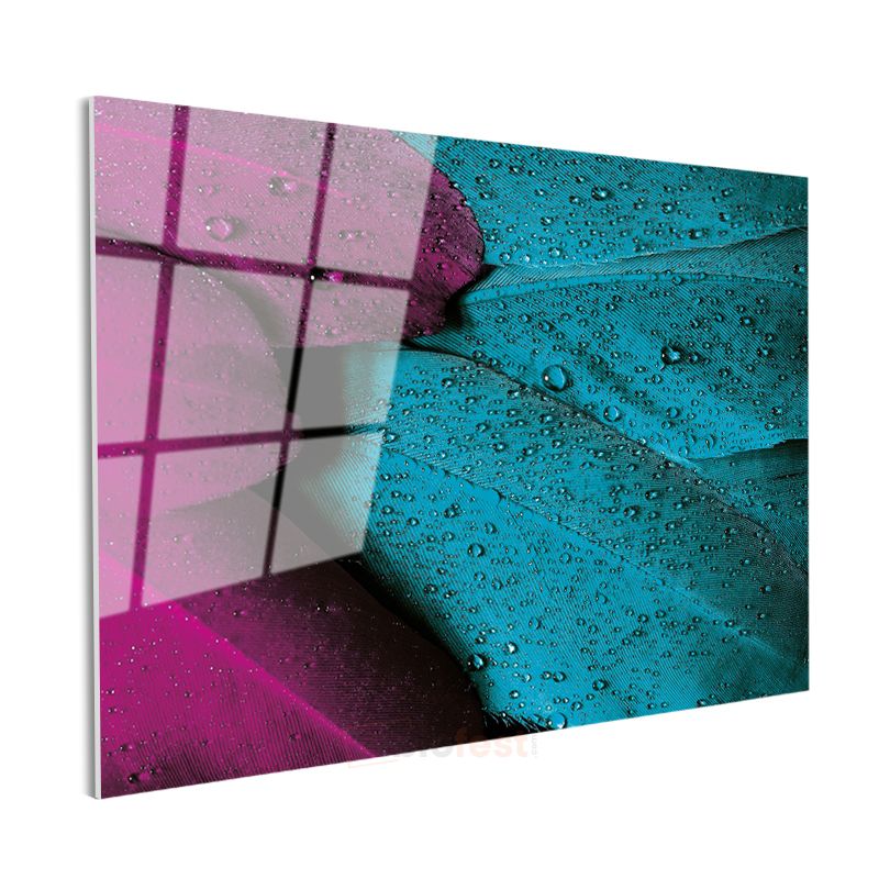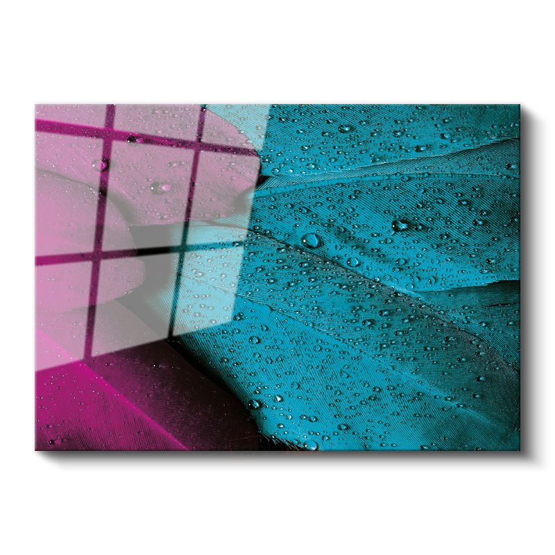 Yaprak Detayı - Mor ve Turkuaz Tonlarda Çarpıcı Makro Çekim Cam Tablo
