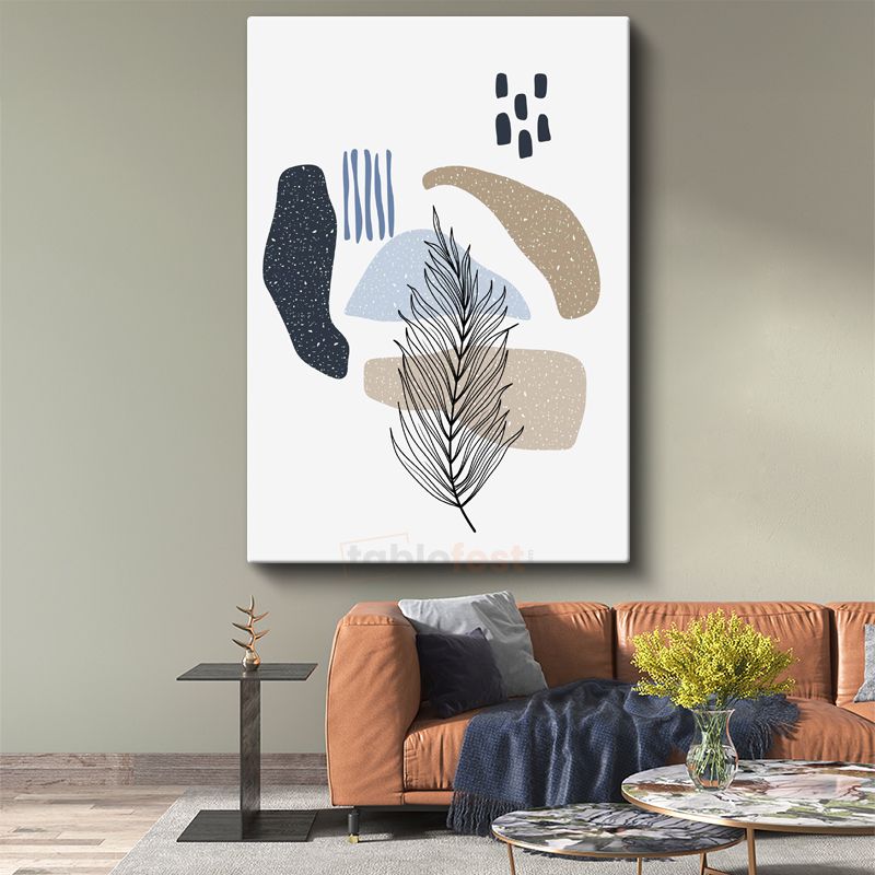 Yaprak Silueti - Geometrik Soyut Desen Kanvas Tablo