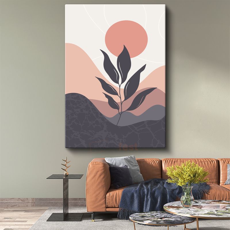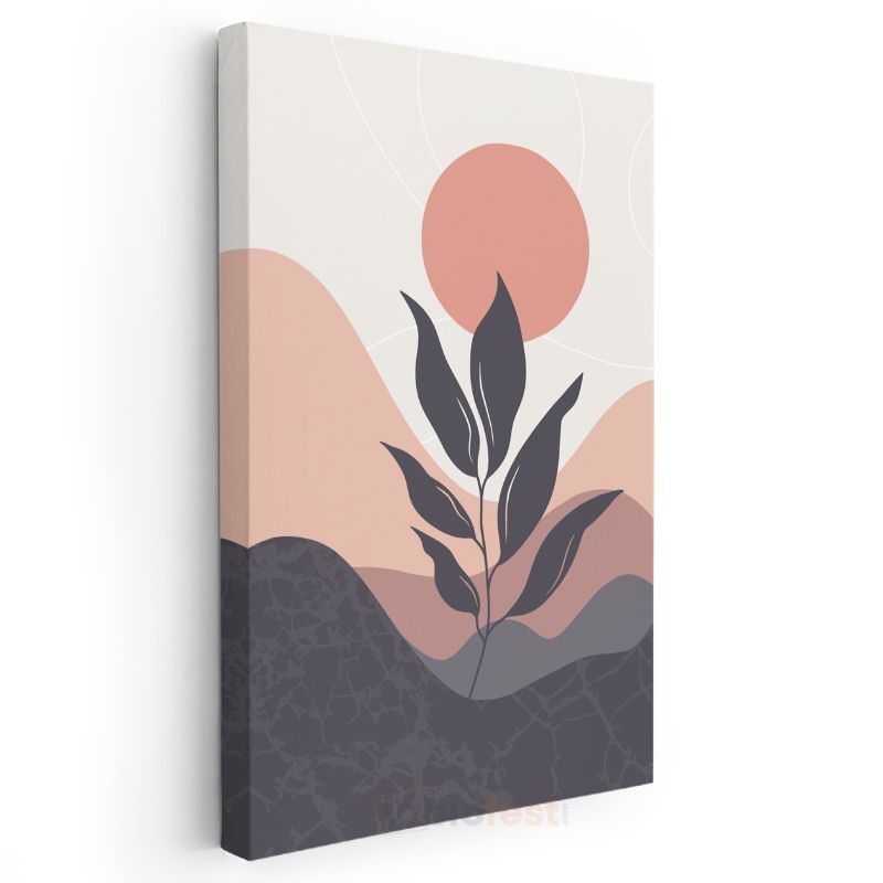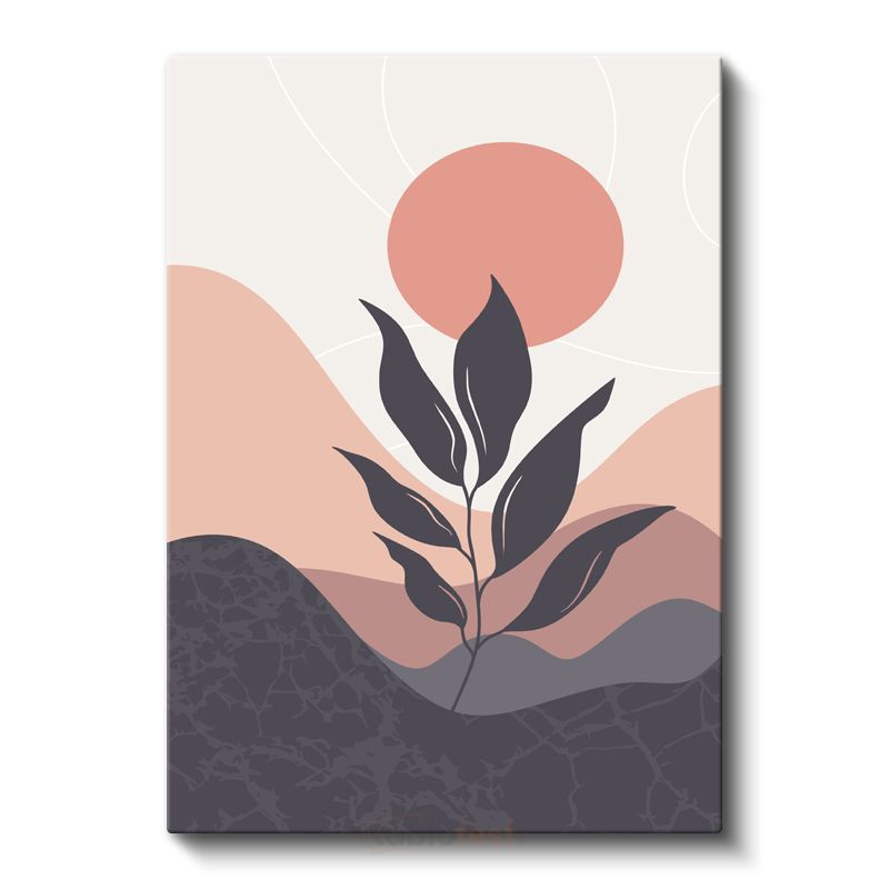 Yaprak Silüeti - Pembe Güneşle Soyut Doğa Kompozisyonu Kanvas Tablo