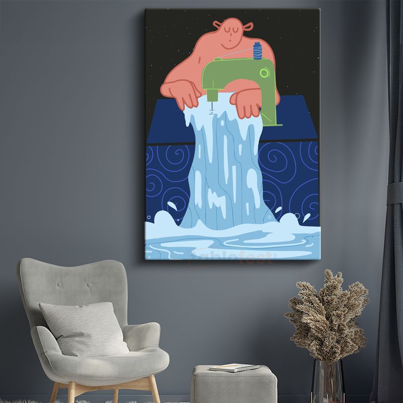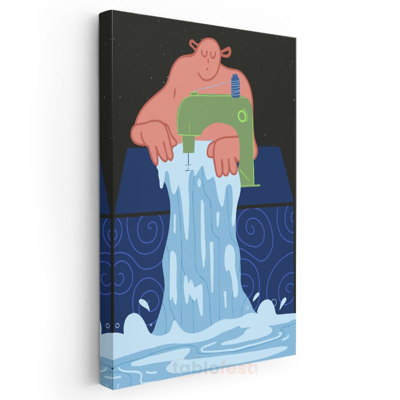 Yaratıcılık Akışı - Dikiş Makinesinden Dökülen Sular Kanvas Tablo