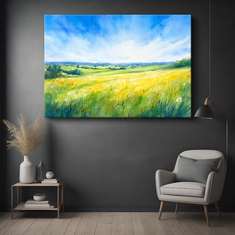 Yaz Çayırları - Mavi Gökyüzü Altında Sarı Tarlalar Kanvas Tablo
