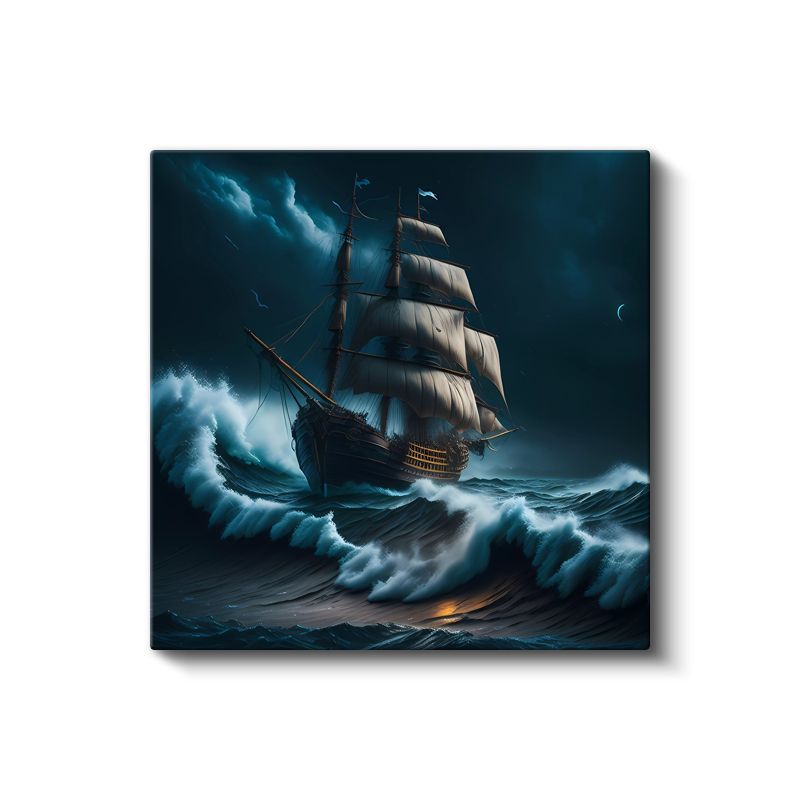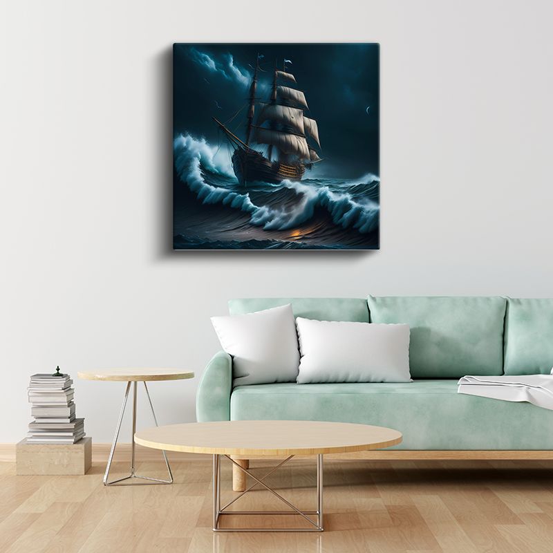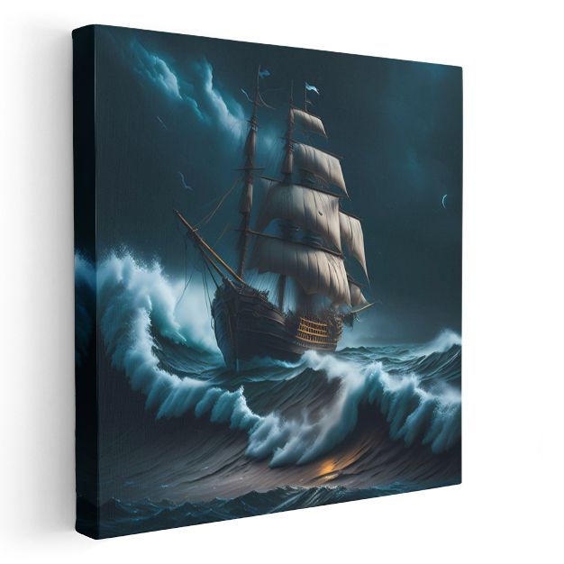 Yelkenli Gemi - Fırtınalı Denizde Mücadele Kanvas Tablo