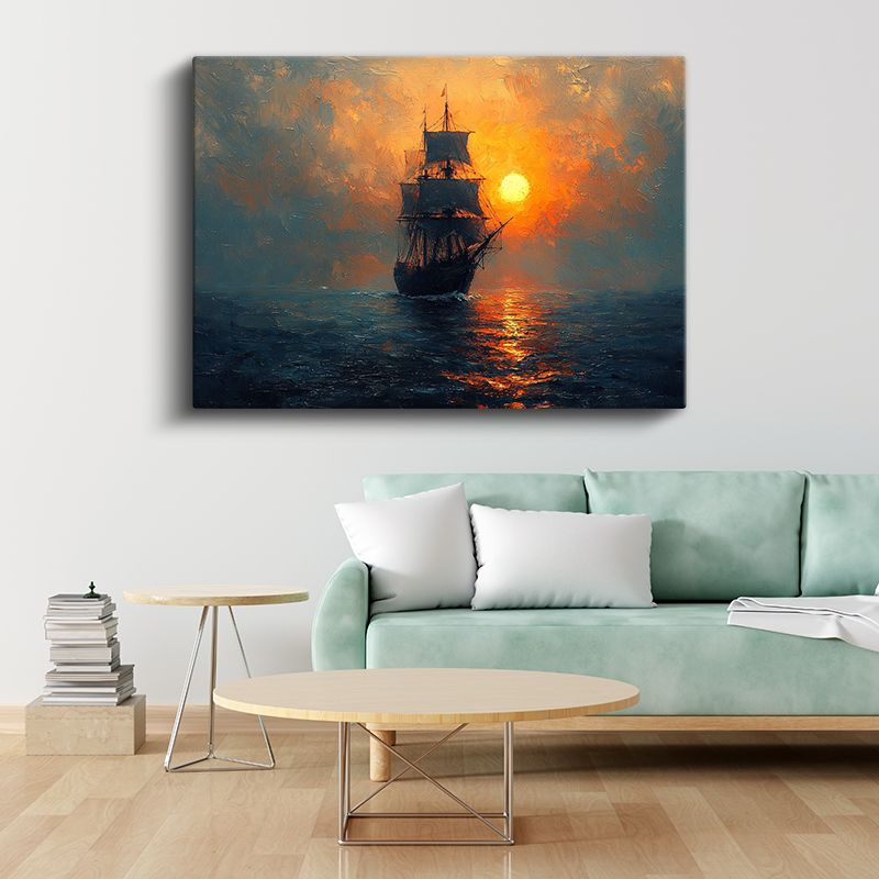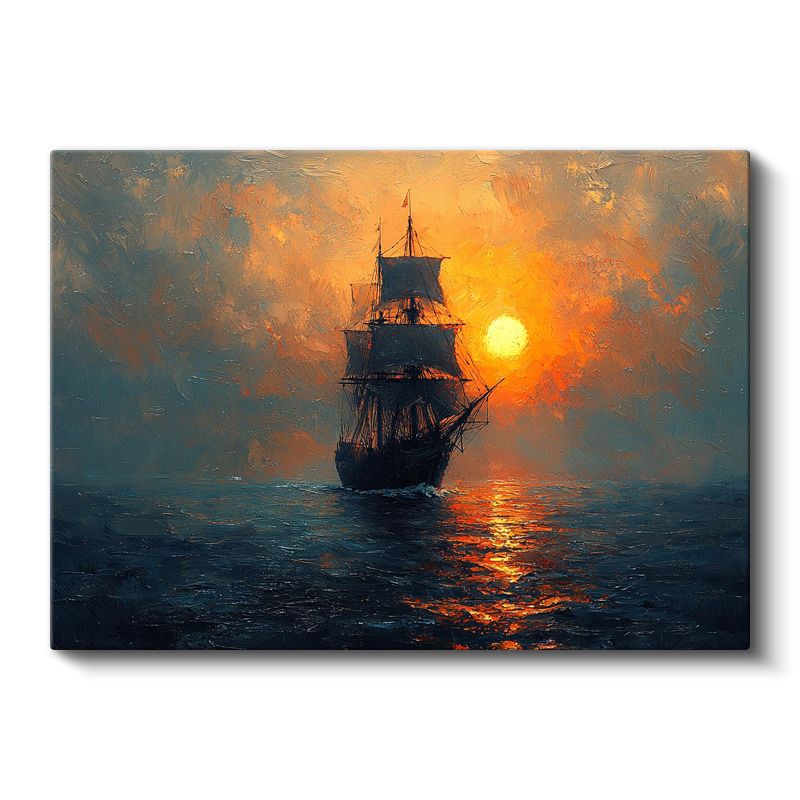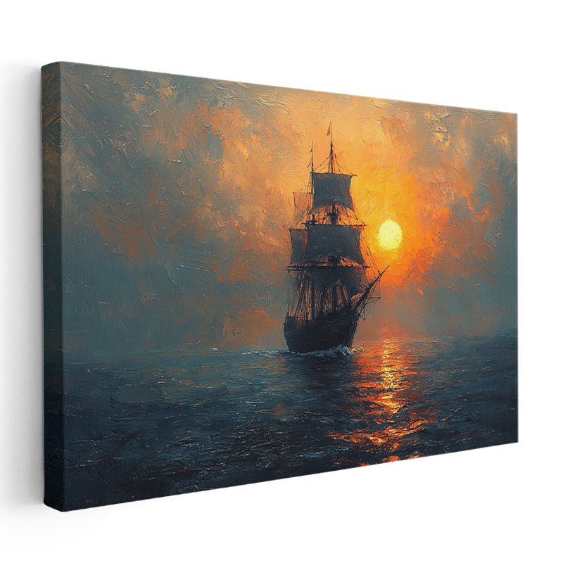 Yelkenli Gemi - Güneş Batarken Okyanus Seyri Kanvas Tablo