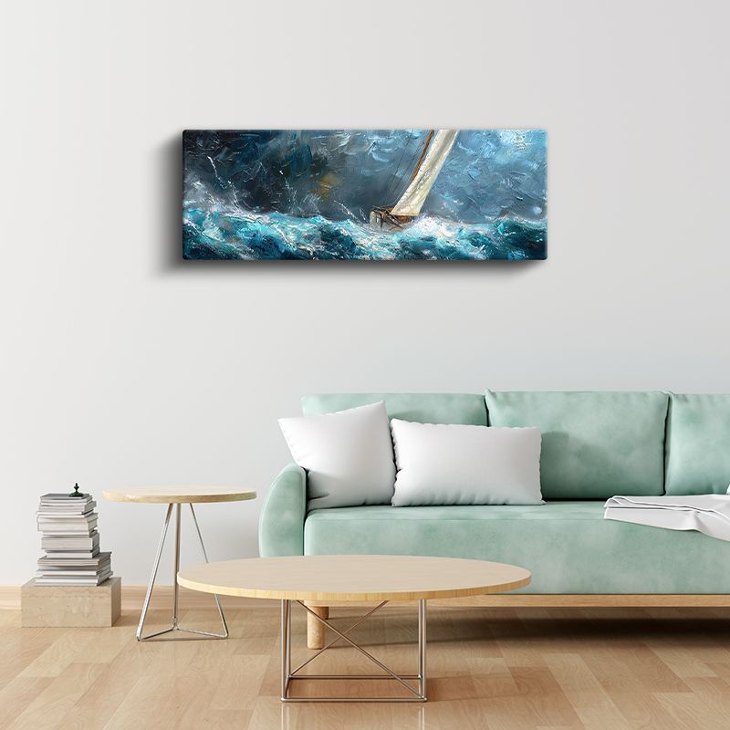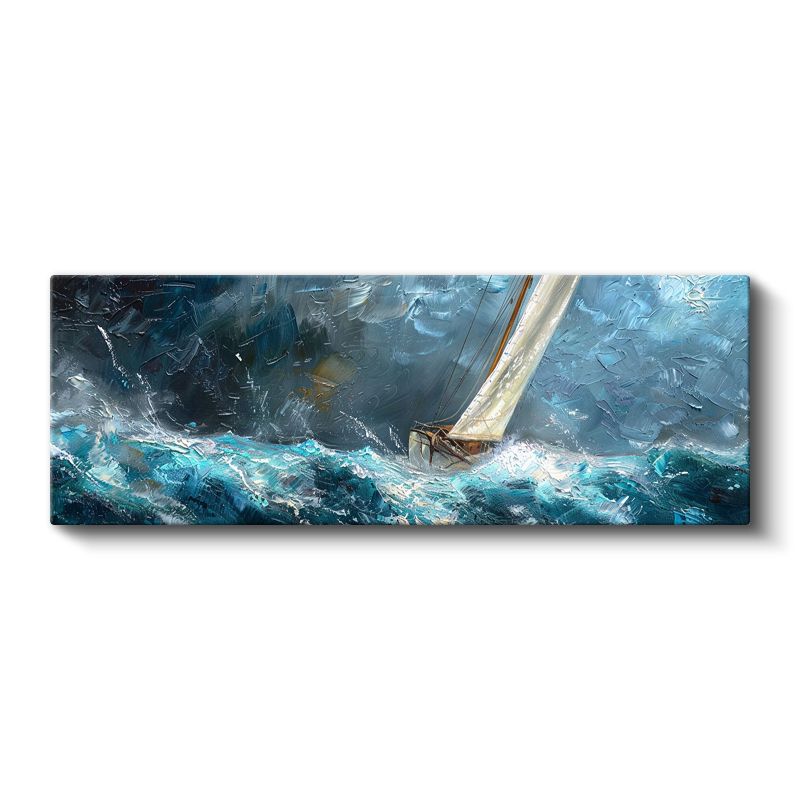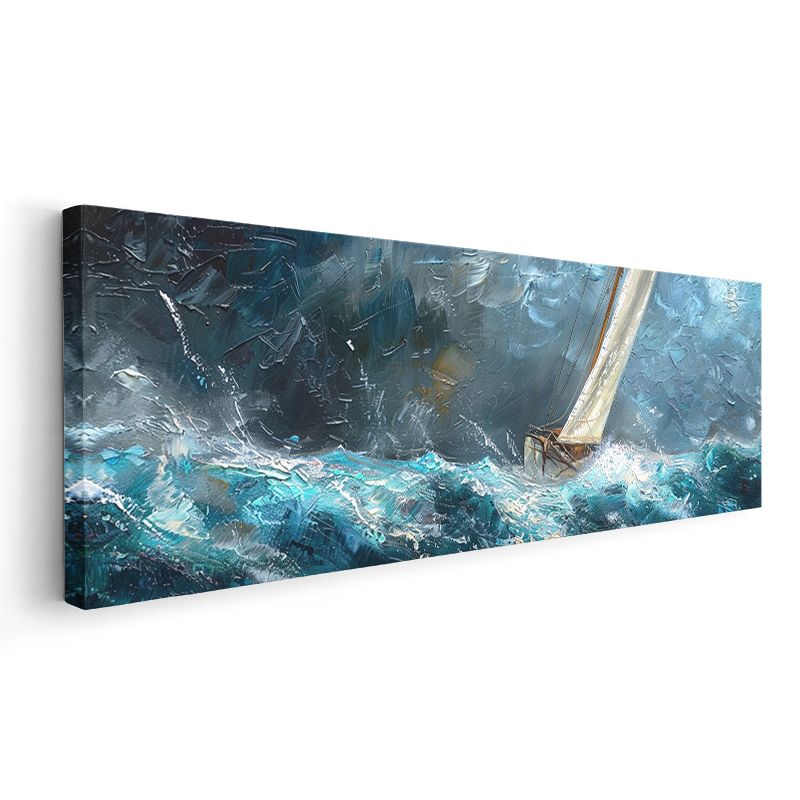 Yelkenli Tekne - Dalgalı Denizde Mücadele Kanvas Tablo