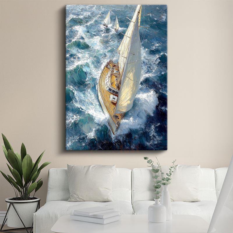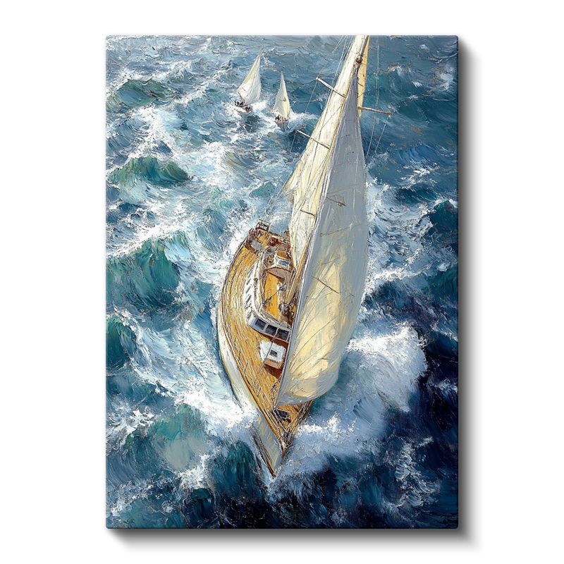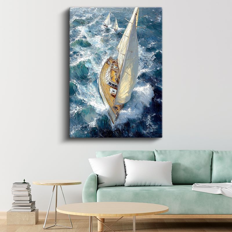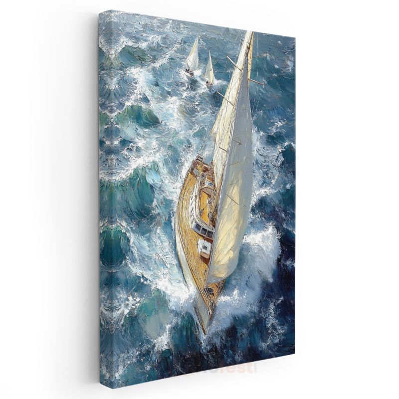 Yelkenli Tekne - Dalgalı Denizde Yarış Kanvas Tablo