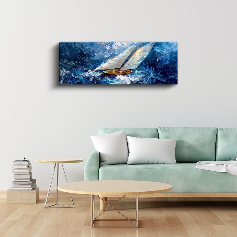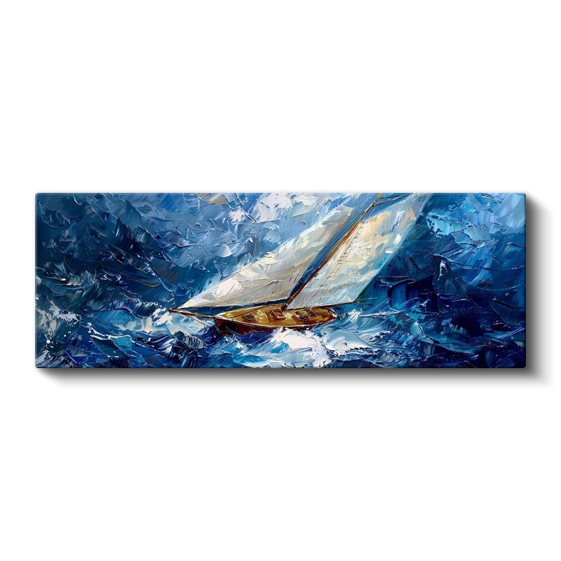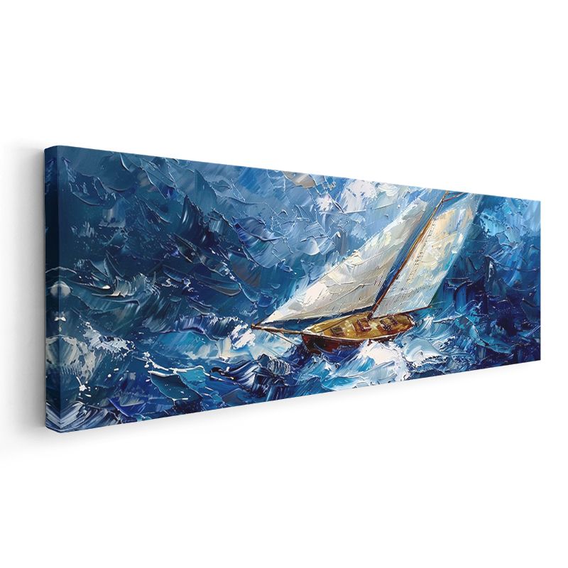 Yelkenli Tekne - Fırtınalı Denizde Yağlı Boya Kanvas Tablo