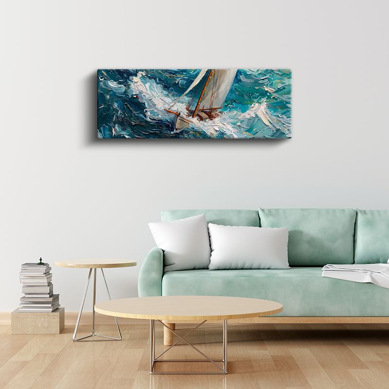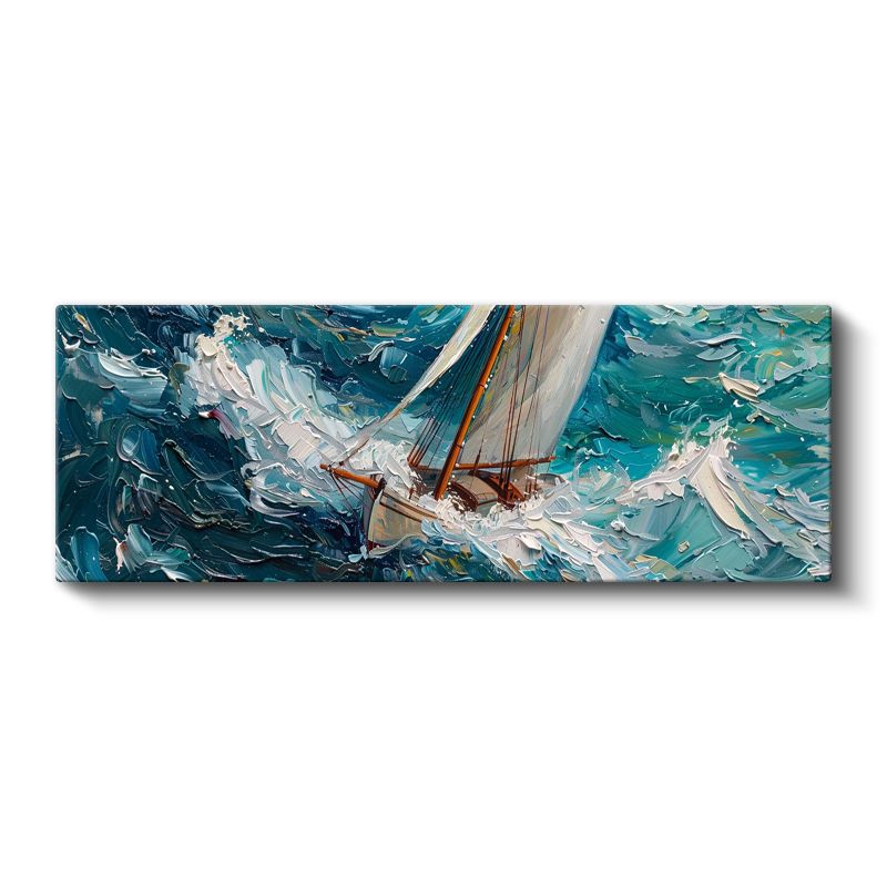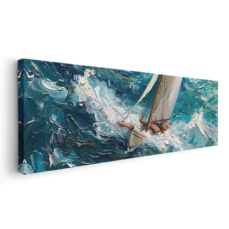 Yelkenli Tekne - Köpüklü Dalgalarda Kanvas Tablo