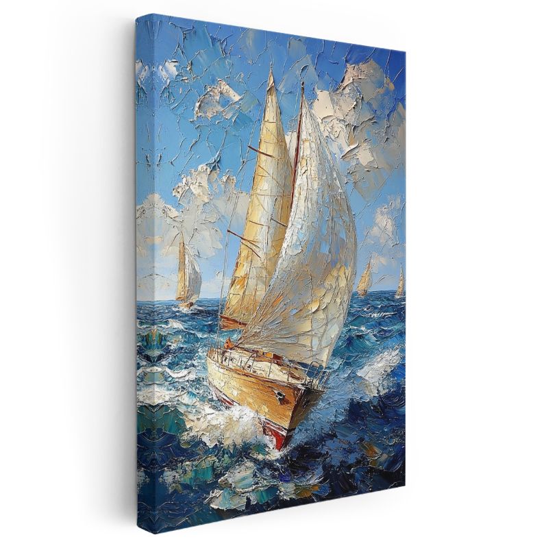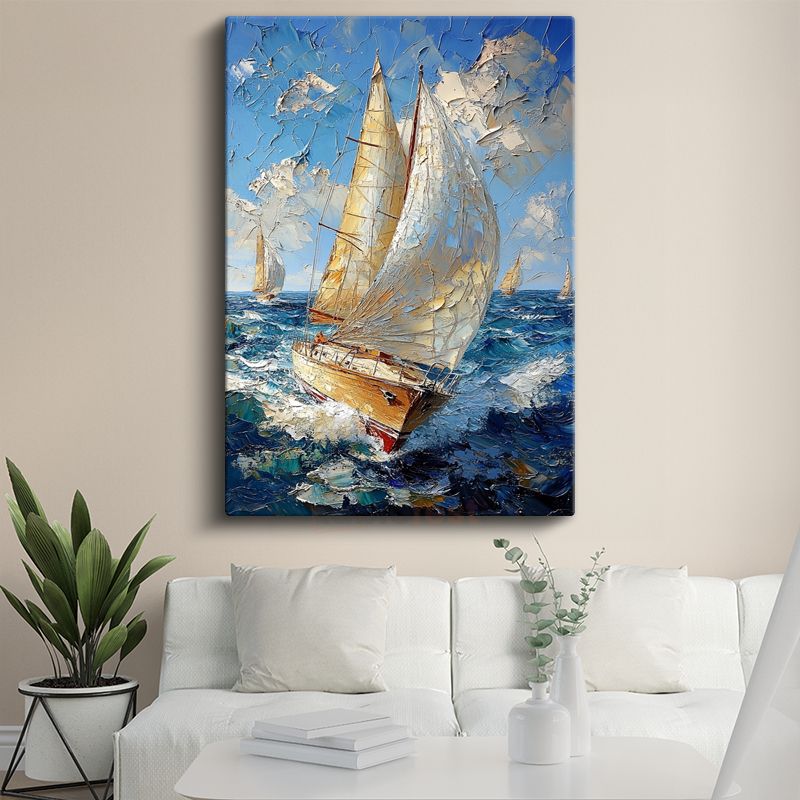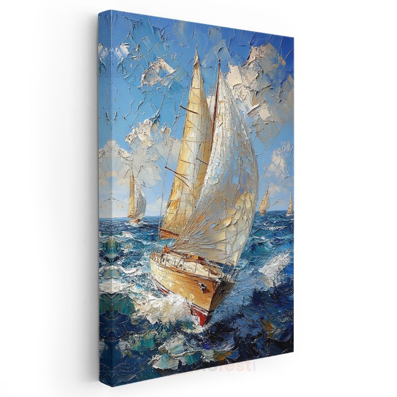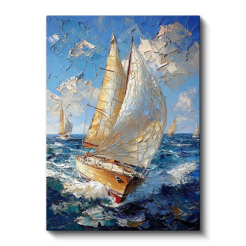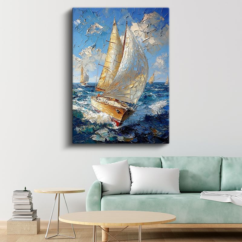 Yelkenli Tekne - Mavi Denizde Beyaz Yelkenli Kanvas Tablo