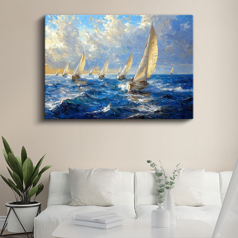 Yelkenli Tekneler - Deniz Yarışı Kanvas Tablo