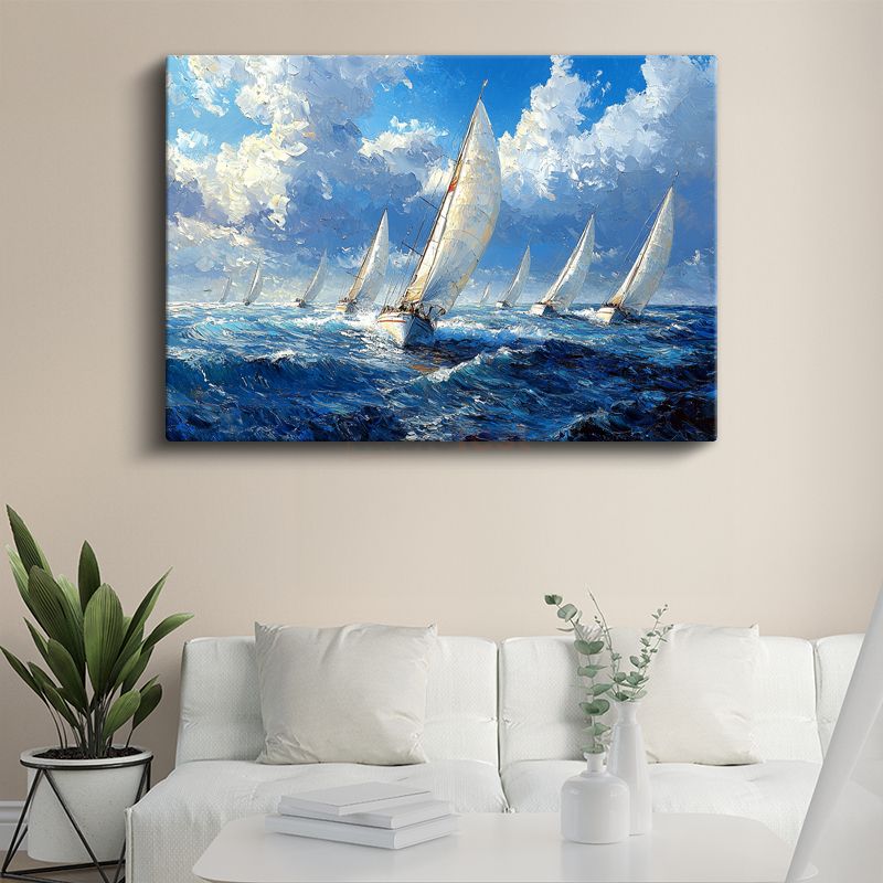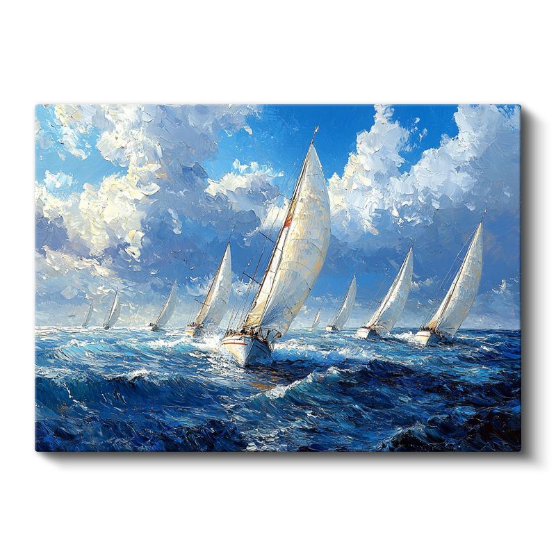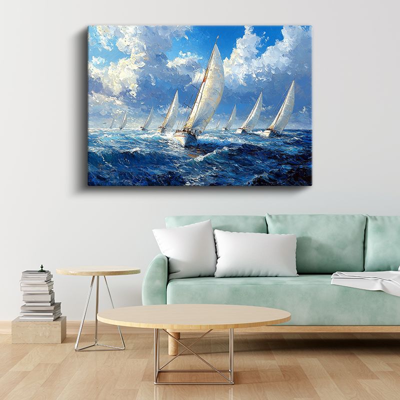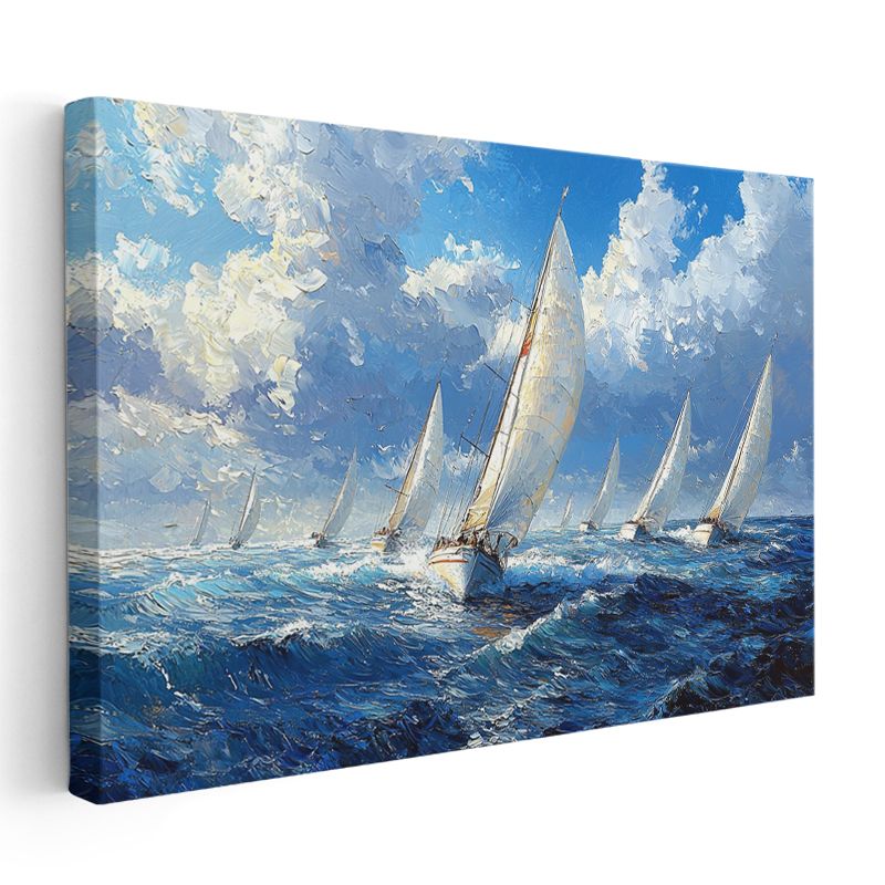 Yelkenliler - Mavi Denizde Yarış Tekneleri Kanvas Tablo