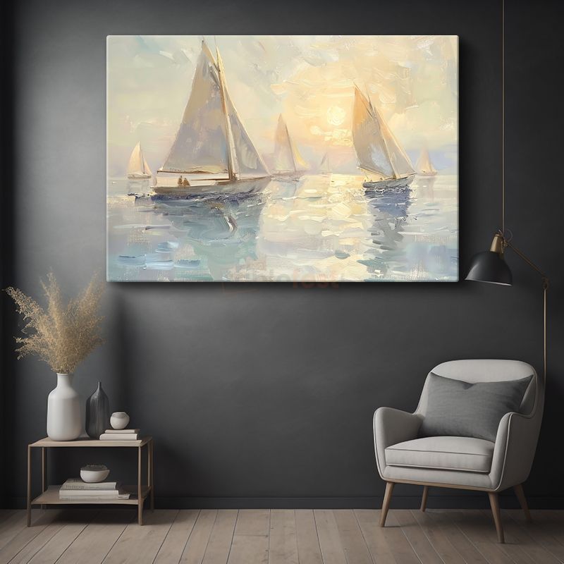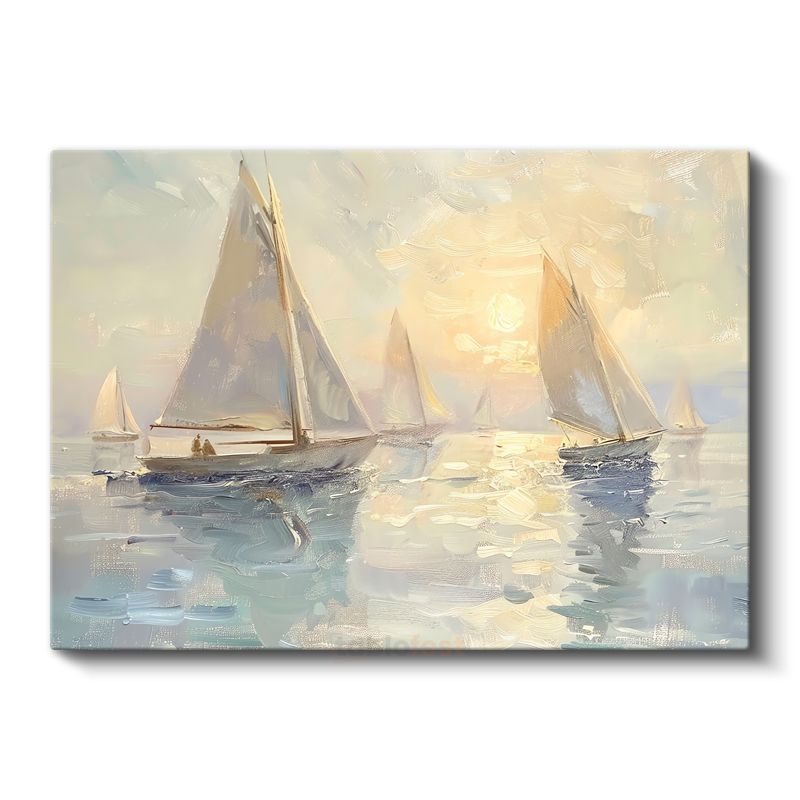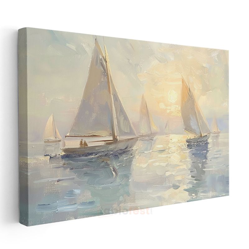 Yelkenliler - Sisli Sabahta Sakin Deniz Yolculuğu Kanvas Tablo
