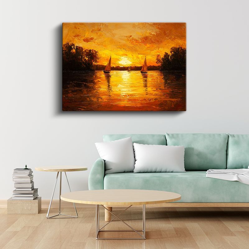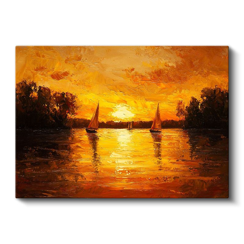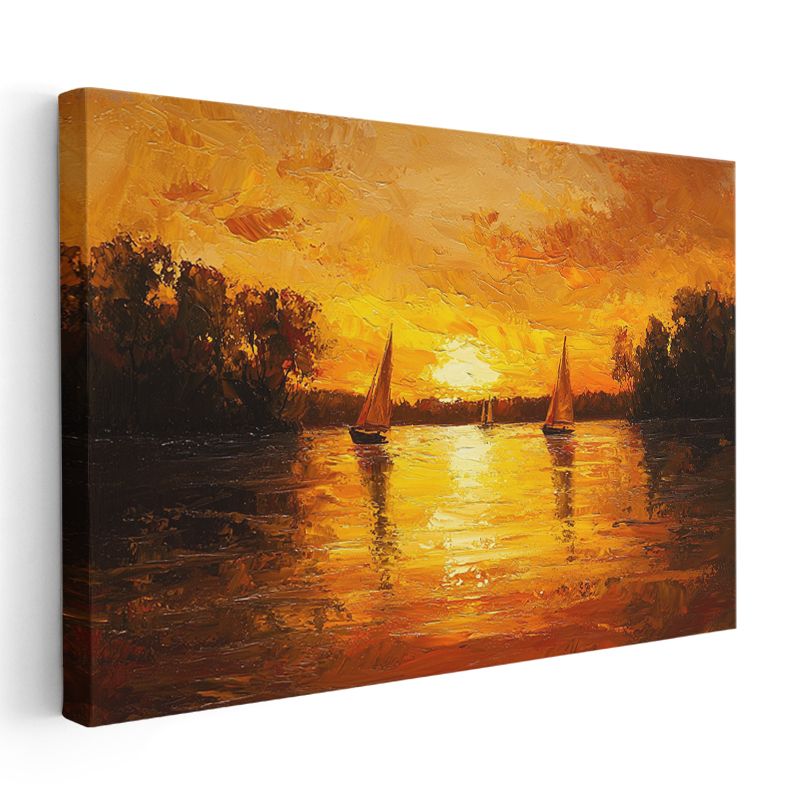 Yelkenliler - Turuncu Gün Batımında Huzurlu Seyir Kanvas Tablo