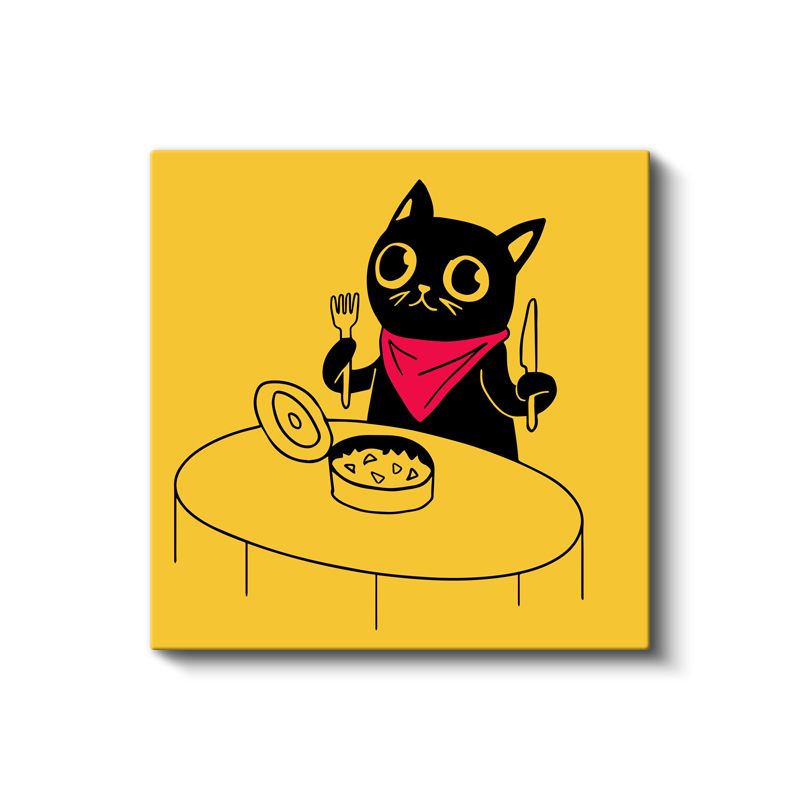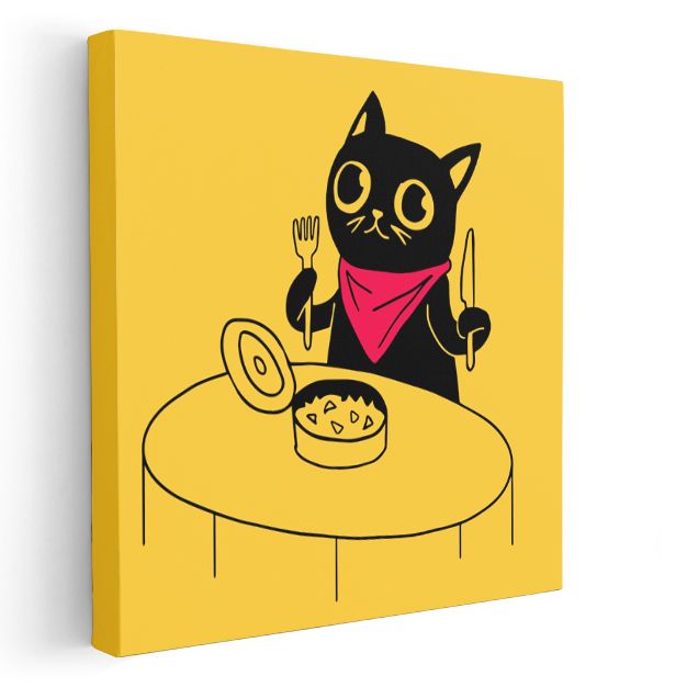 Yemek Vakti - Kırmızı Bandanalı Kedi Kanvas Tablo