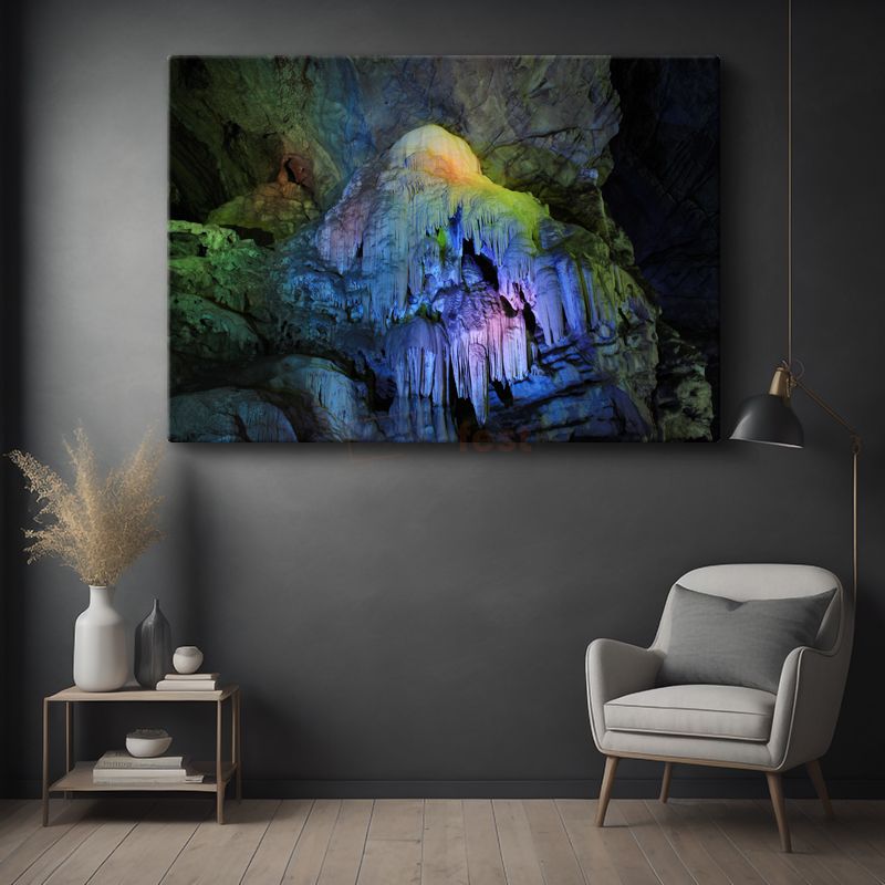 Yeraltı Cenneti - Renkli Sarkıt Dikitler Kanvas Tablo