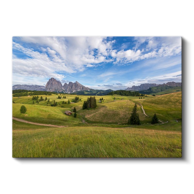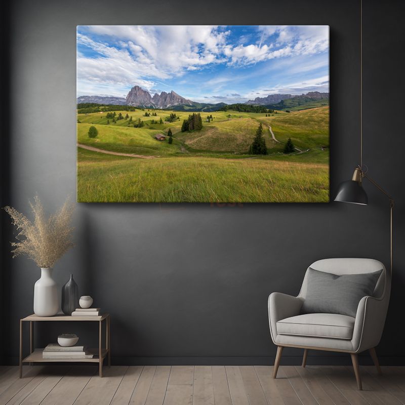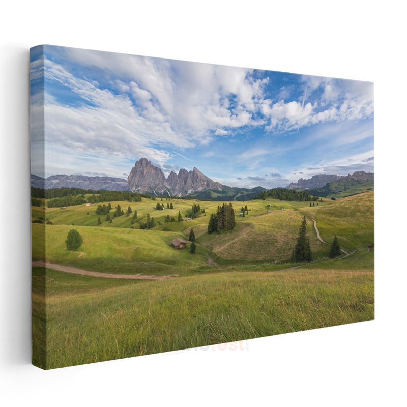 Yeşil Çayırlar - Dağların Gölgesinde Huzur Dolu Manzara Kanvas Tablo
