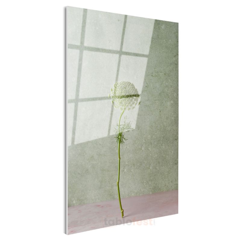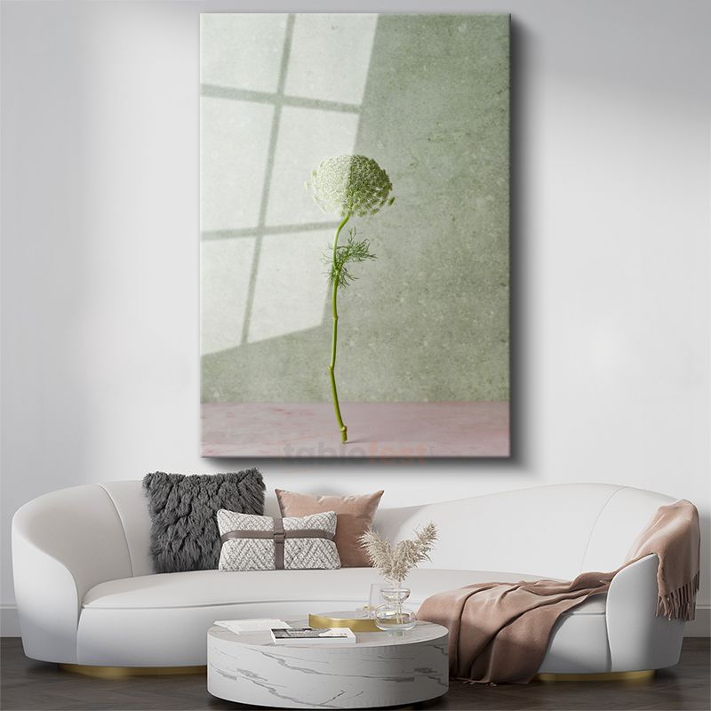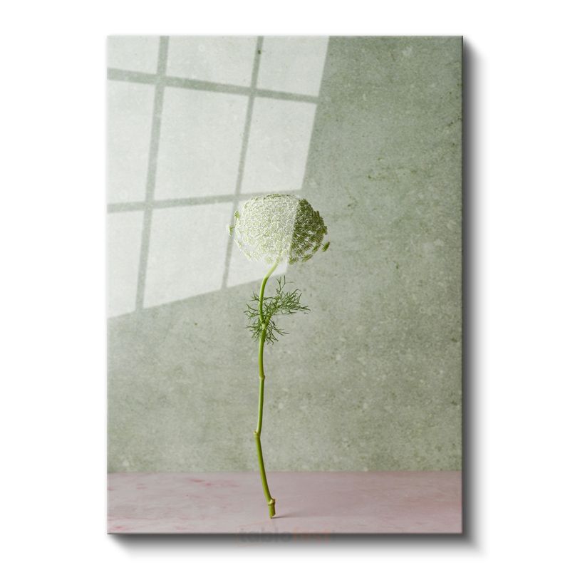 Yeşil Çiçek Tomurcuğu - Minimalist Botanik Detay Cam Tablo