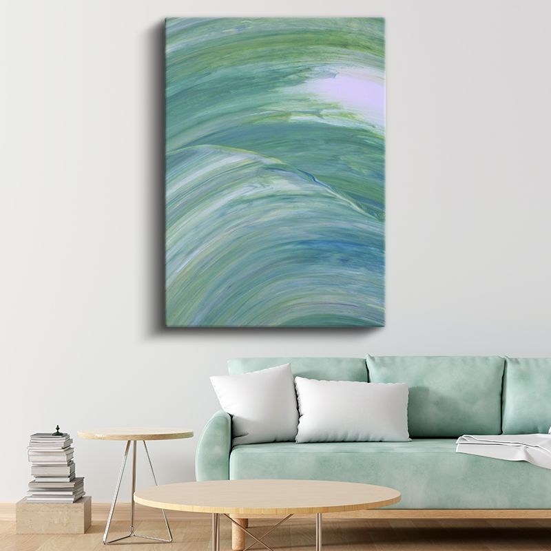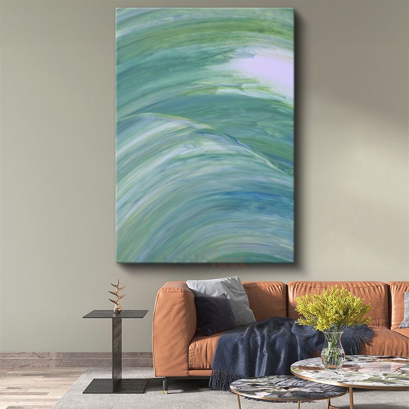 Yeşil Dalga - Dinamik Fırça Darbeleri Kanvas Tablo