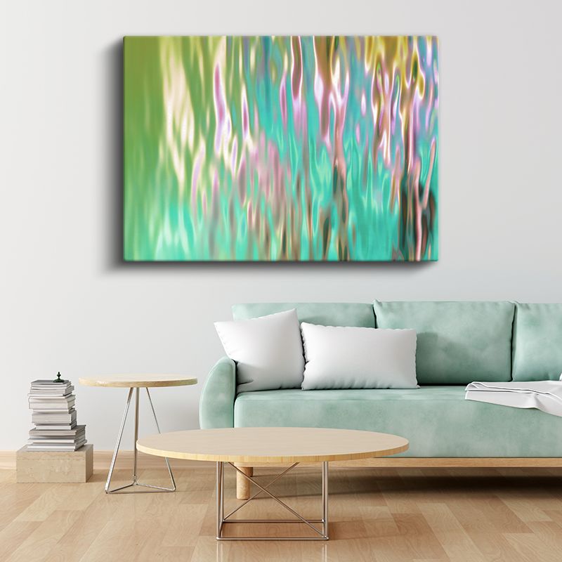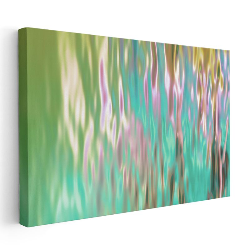 Yeşil Dalga - Turkuaz Akışkan Dikey Çizgiler Kanvas Tablo