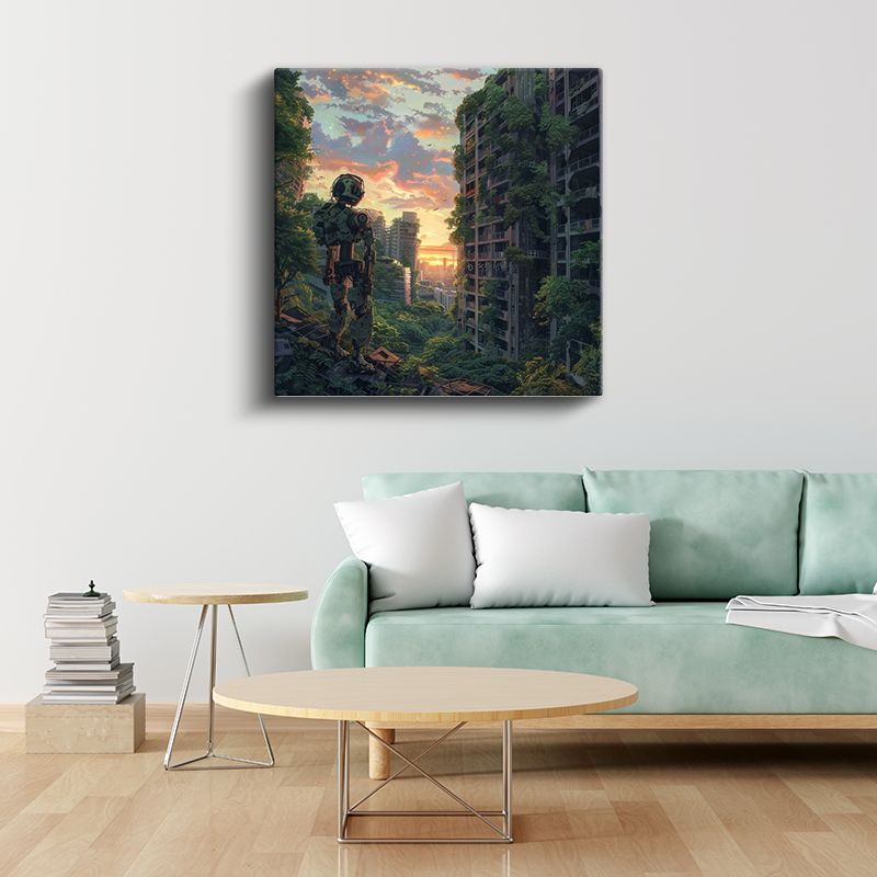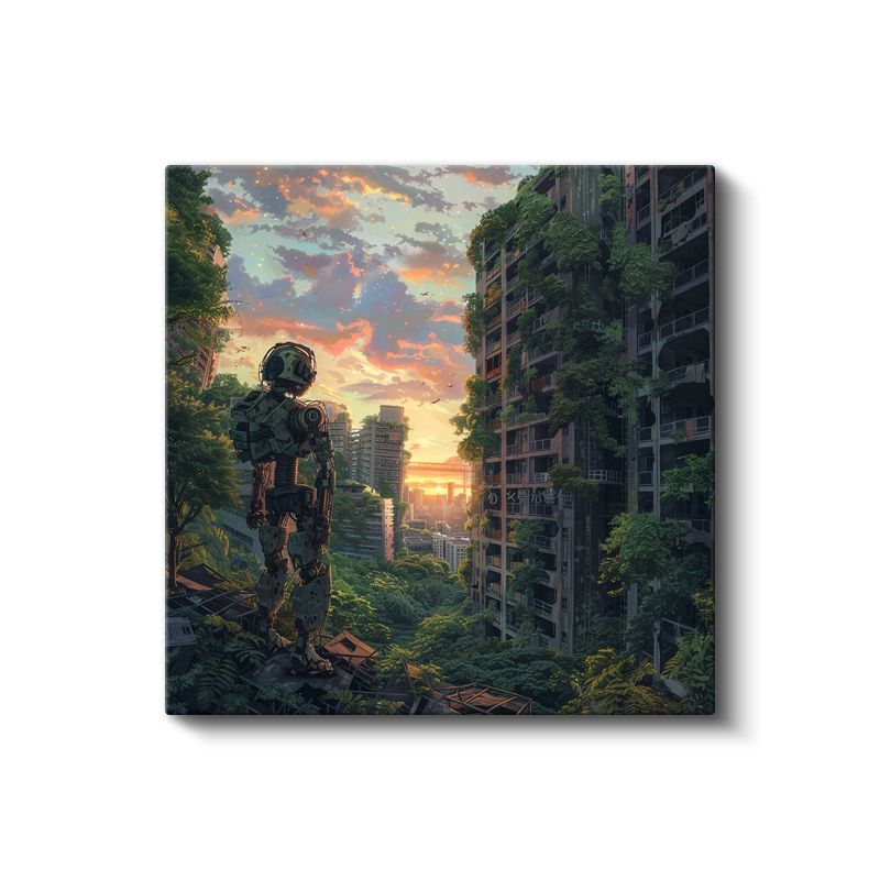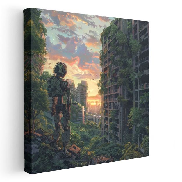 Yeşil Distopya - Gün Batımı Şehir Anime Kanvas Tablo