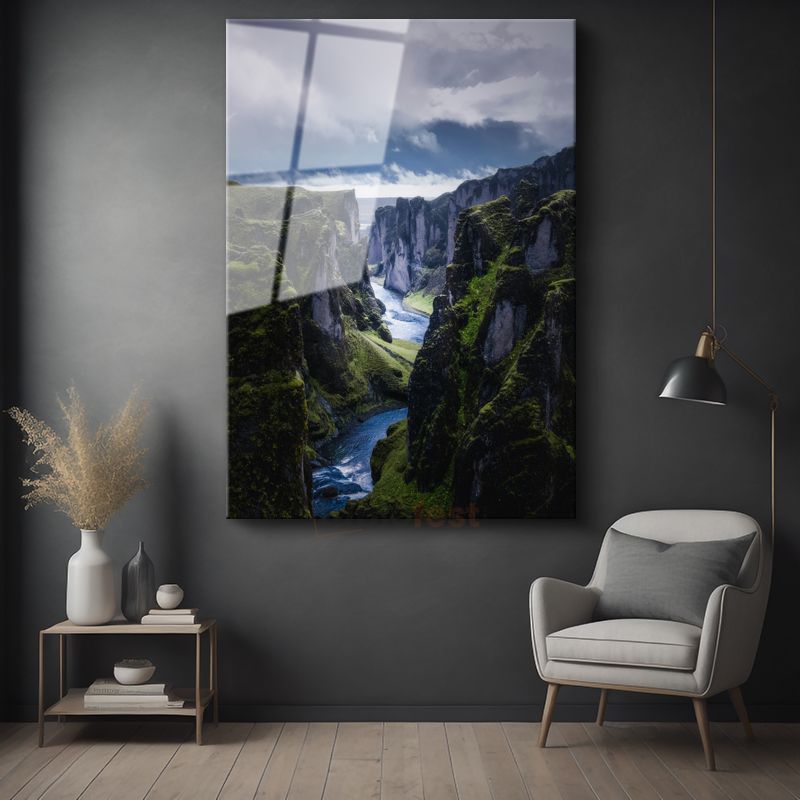 Yeşil Kanyon - Derin Vadide Akan Nehir Cam Tablo