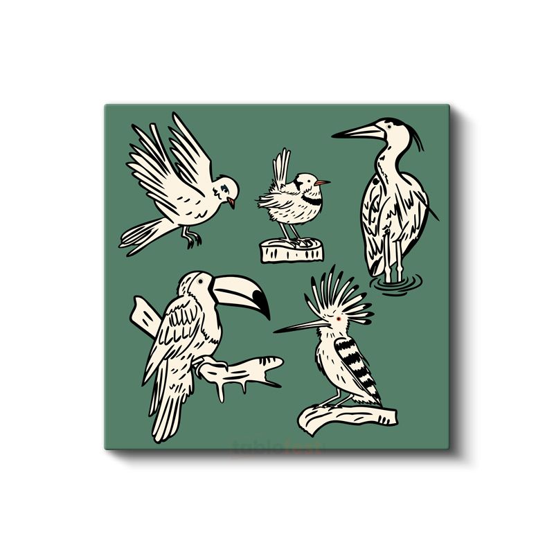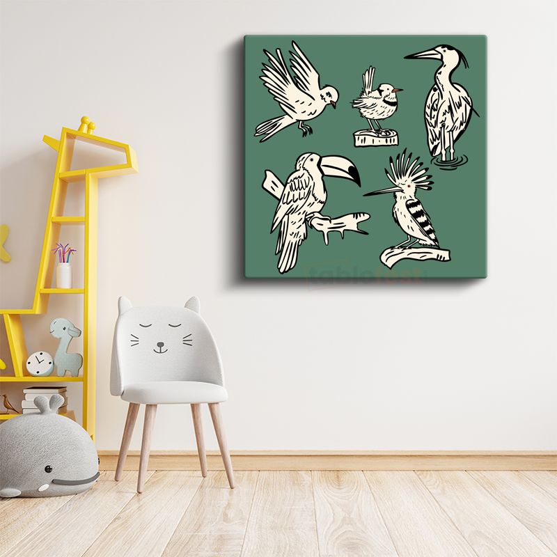 Yeşil Kuşlar - Siyah Beyaz Kanat Dostları Kanvas Tablo