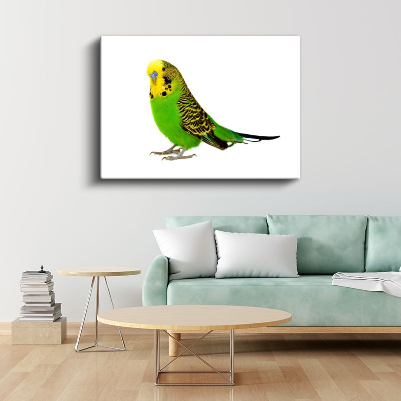 Yeşil Muhabbet Kuşu - Sarı Başlı Sevimli Kuş Kanvas Tablo