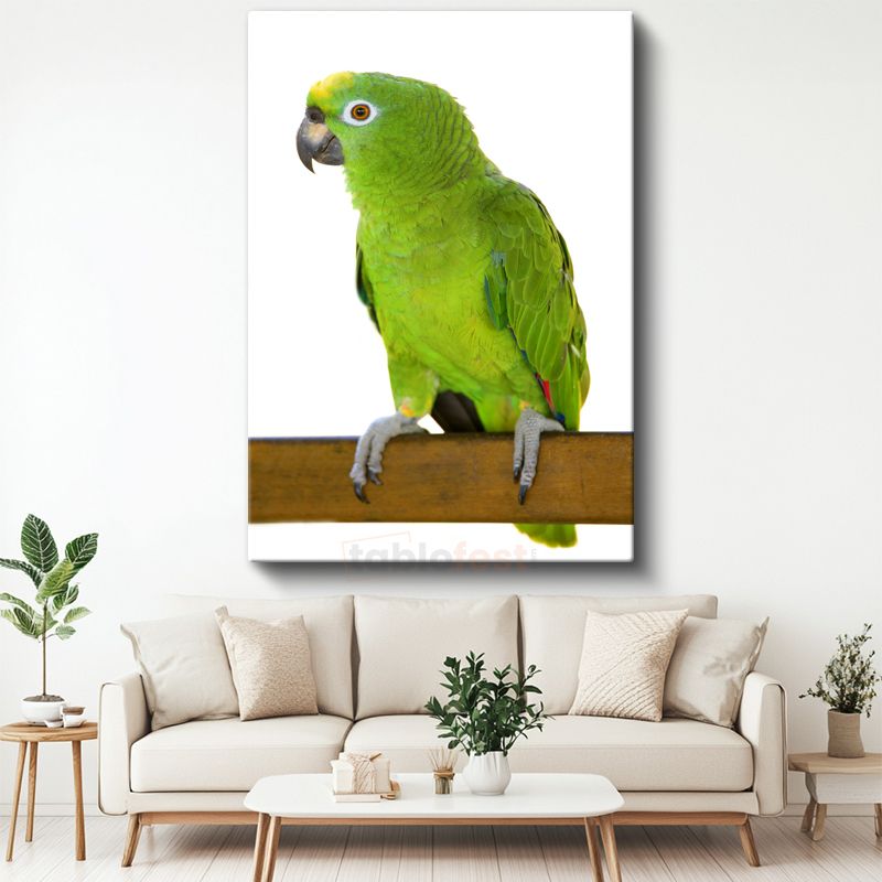 Yeşil Papağan - Zümrüt Tüylü Egzotik Kuş Kanvas Tablo
